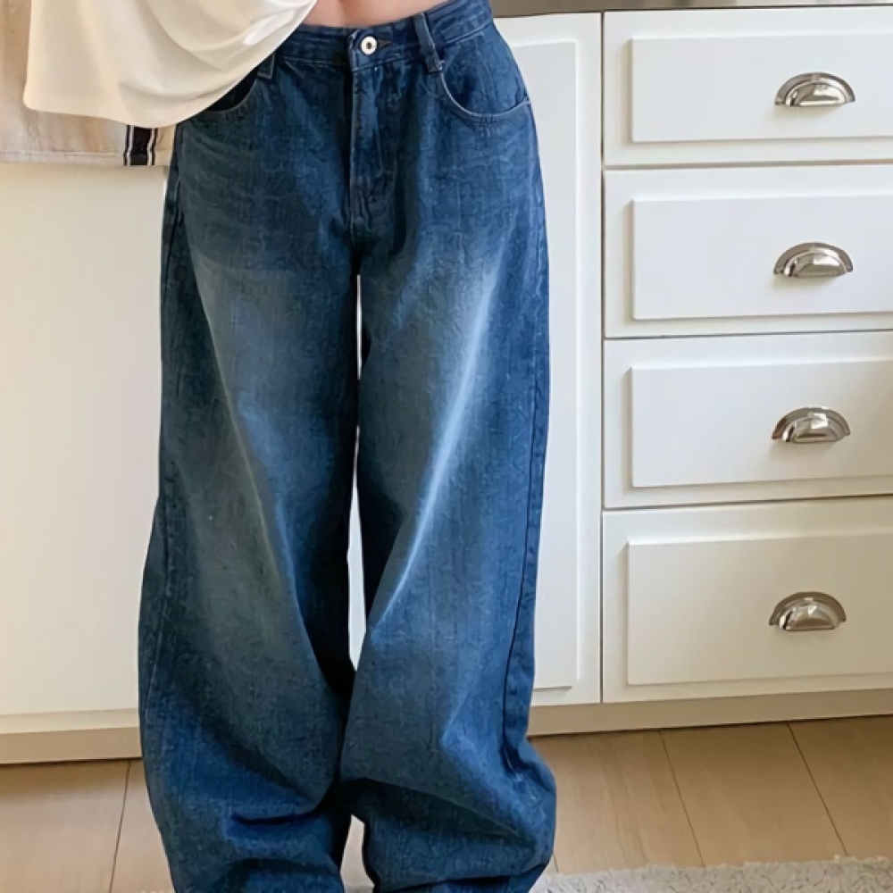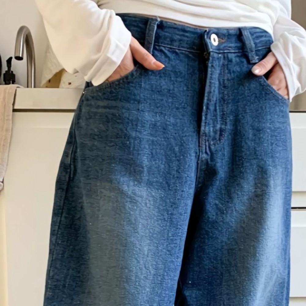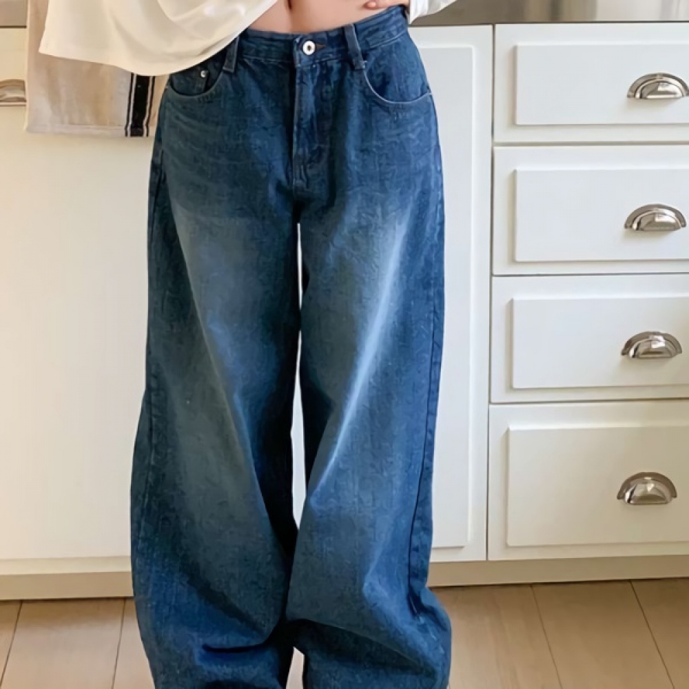 여성 빈티지 워싱 피치기모 와이드 데님 팬츠