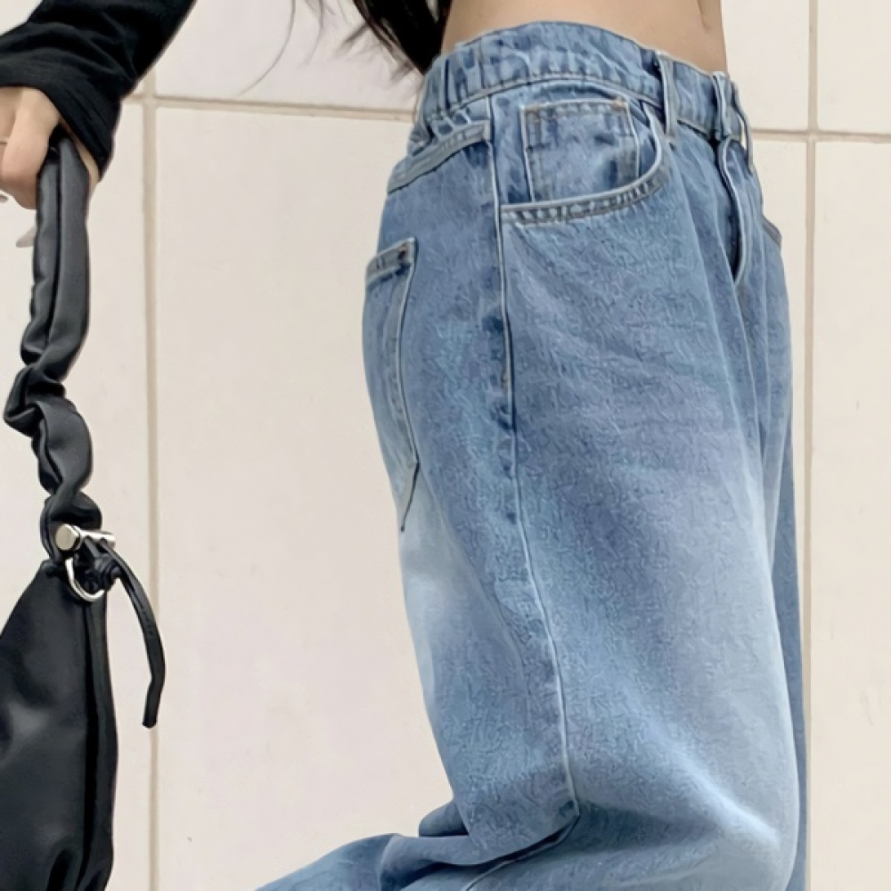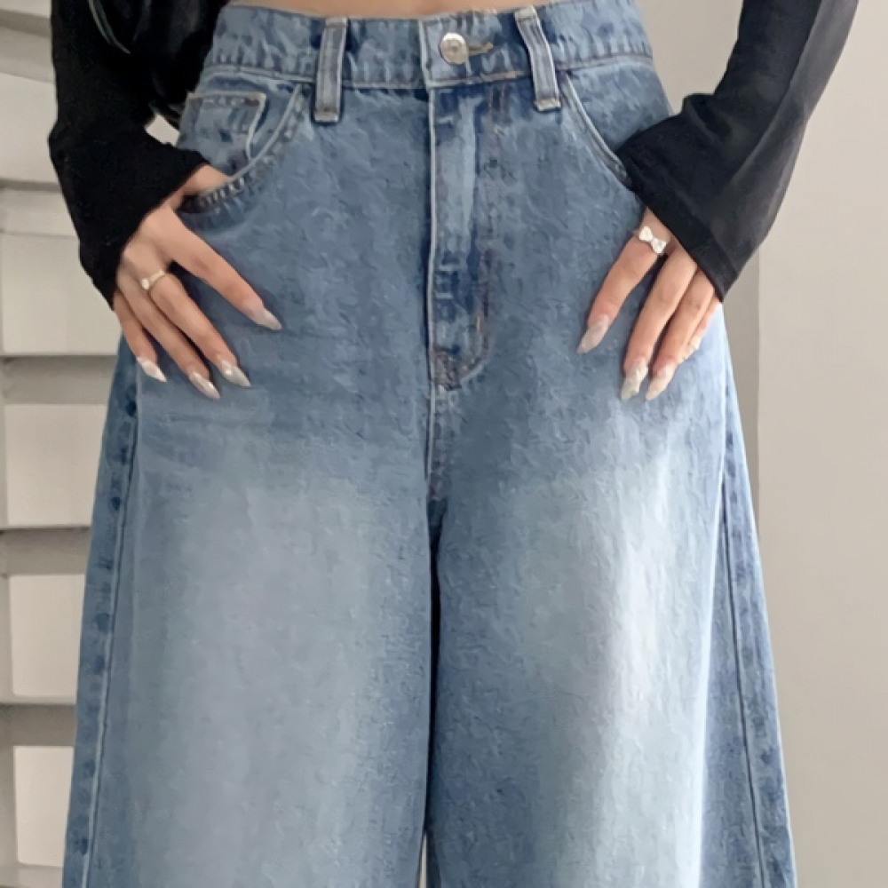 여성 논페이드 커브드 와이드 기모 데님 팬츠