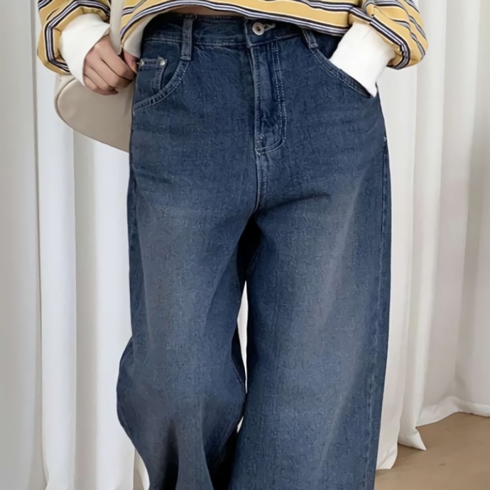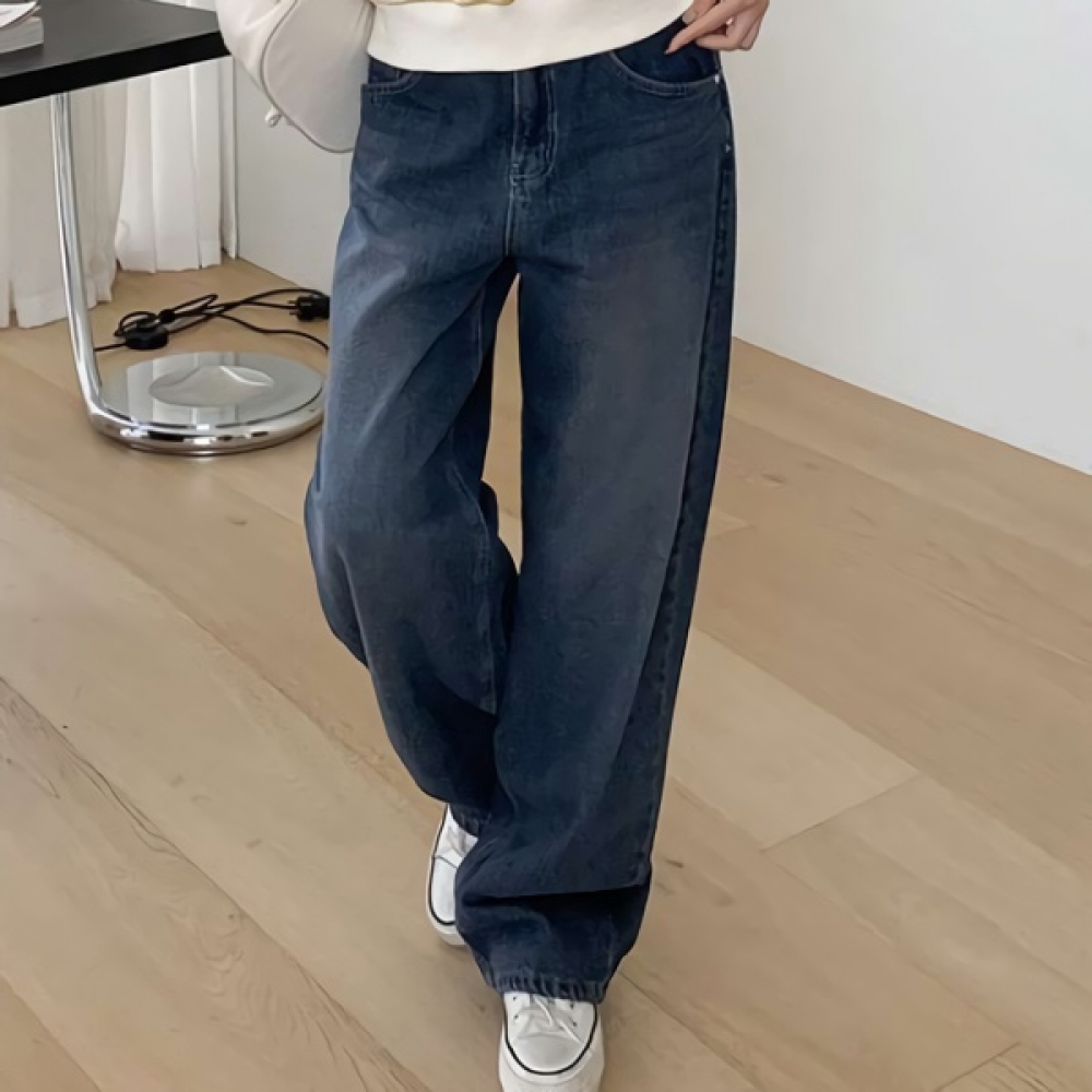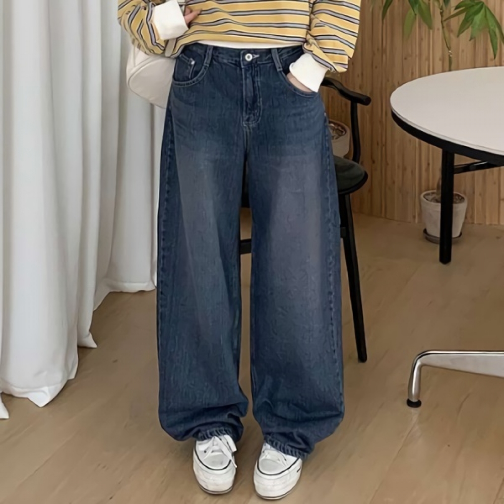 여성 논페이드 커브드 와이드 기모 데님 팬츠