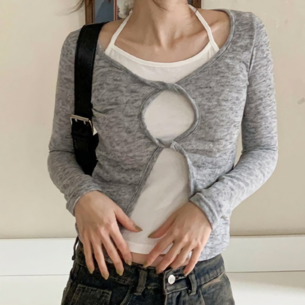 여성 겨울 레이어드 리본 스트랩 티셔츠