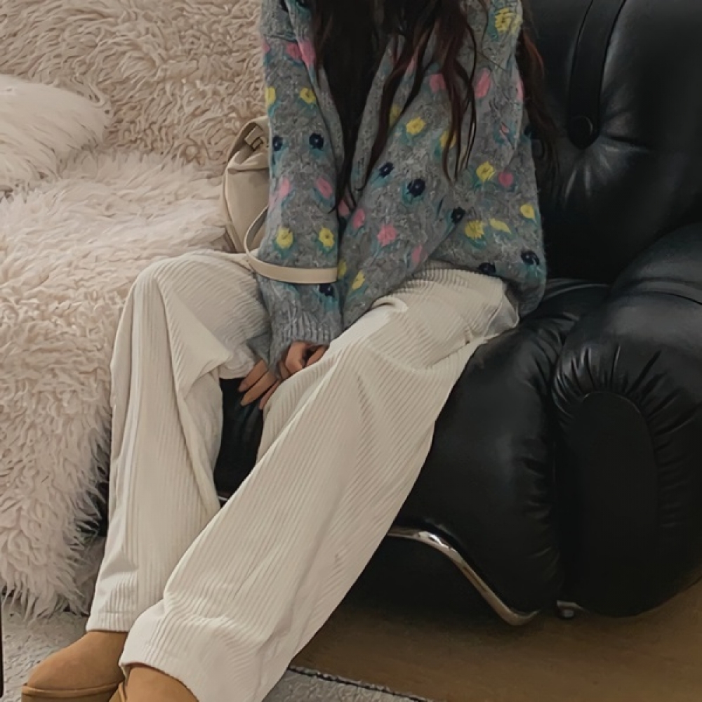 여성 겨울 데일리 기모 와이드 코듀로이 팬츠