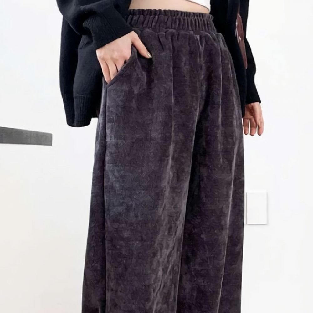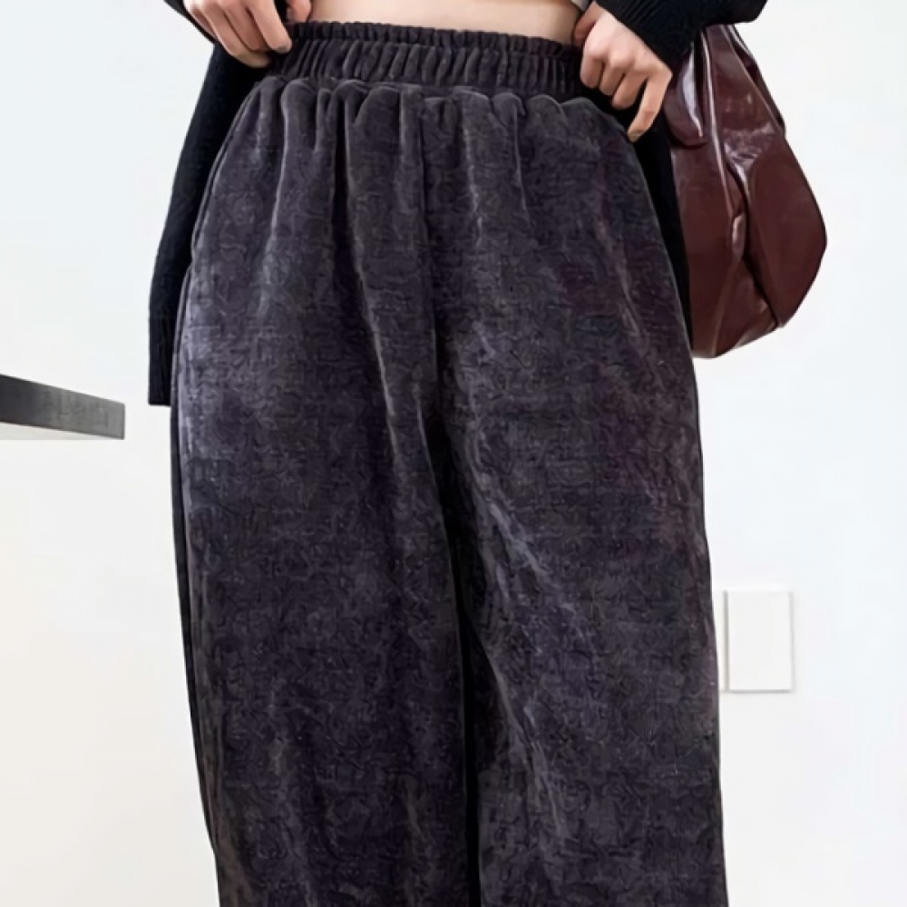 여성 논페이드 커브드 와이드 기모 데님 팬츠