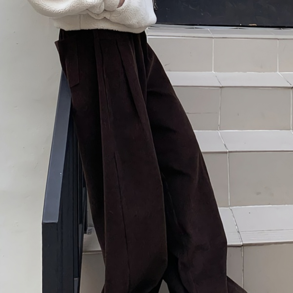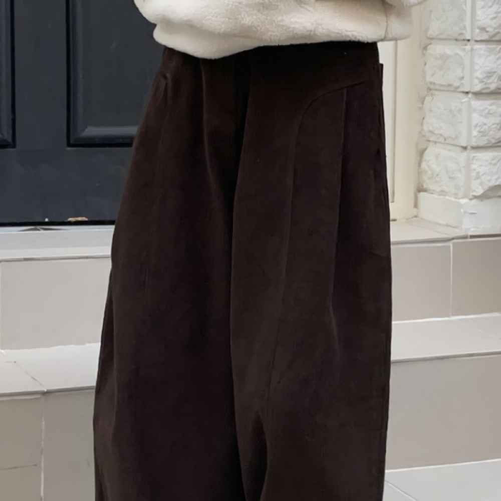 여성 골덴 핀턱 커브드 와이드 밴딩 팬츠