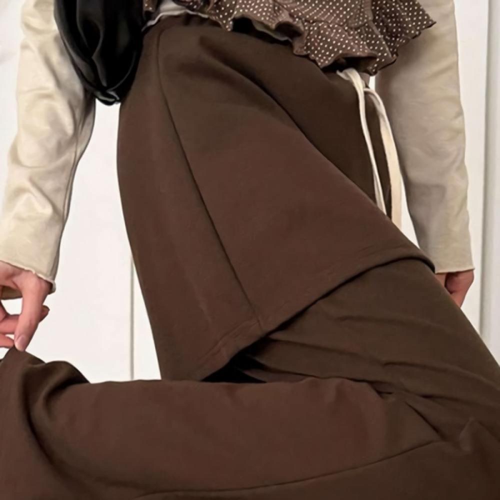 여성 논페이드 커브드 와이드 기모 데님 팬츠