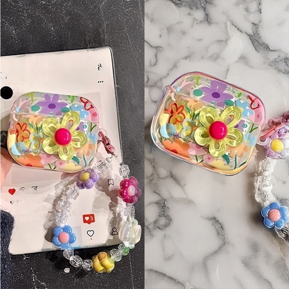 일러스트 꽃펜던트 도장 무늬의 에어팟 프로 케이스