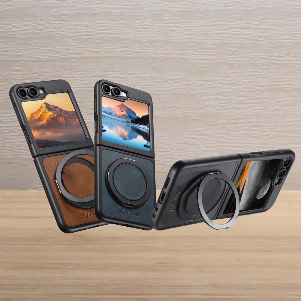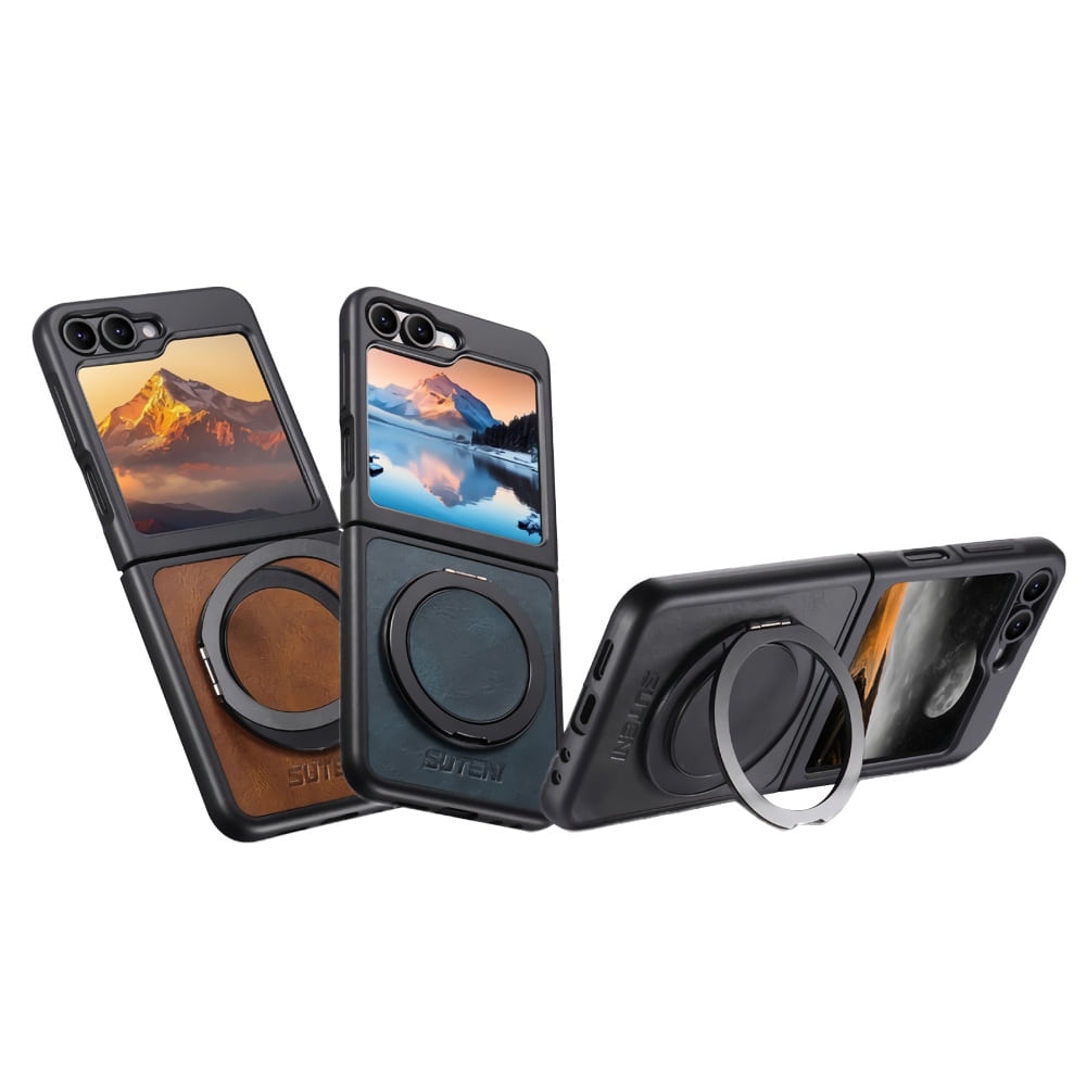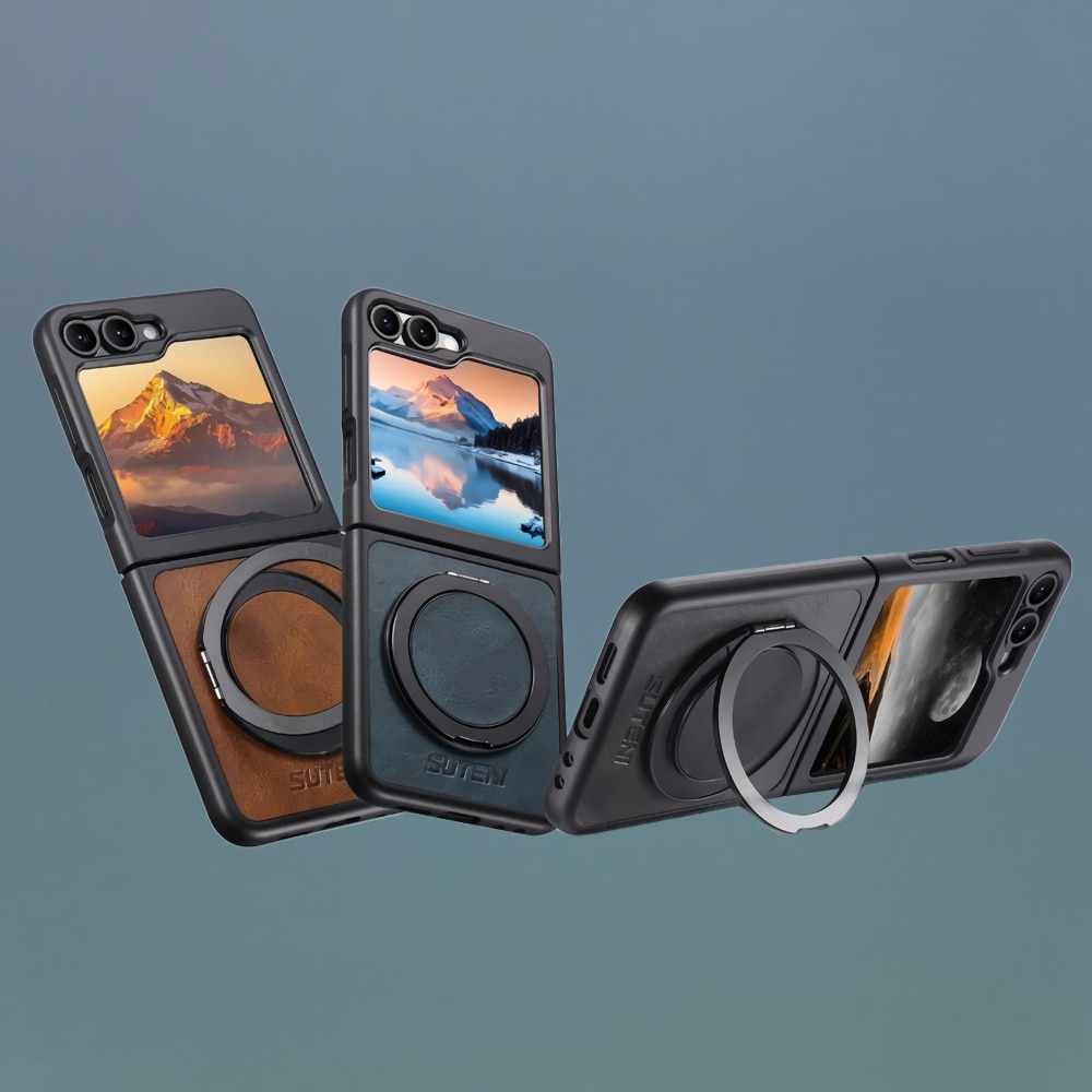 삼성 제트 Z플립 고급 링 브라켓 가죽 핸드폰 케이스
