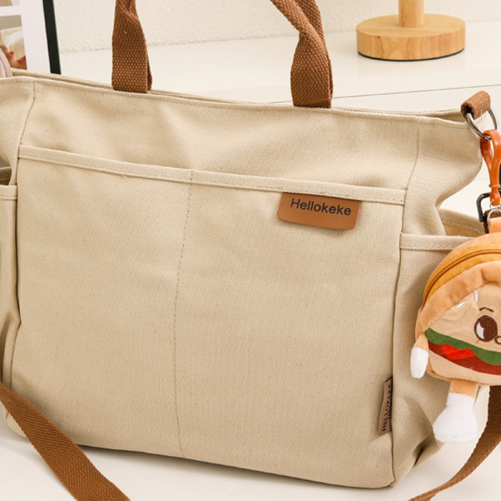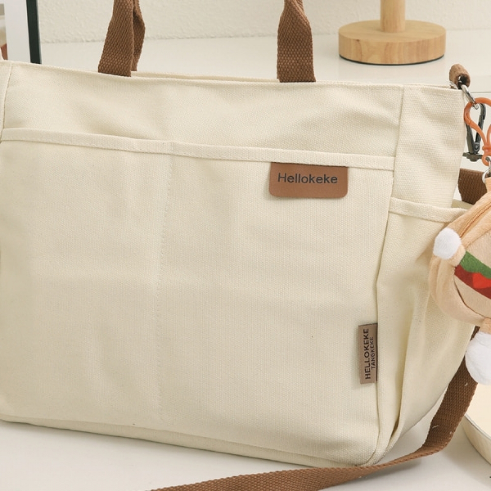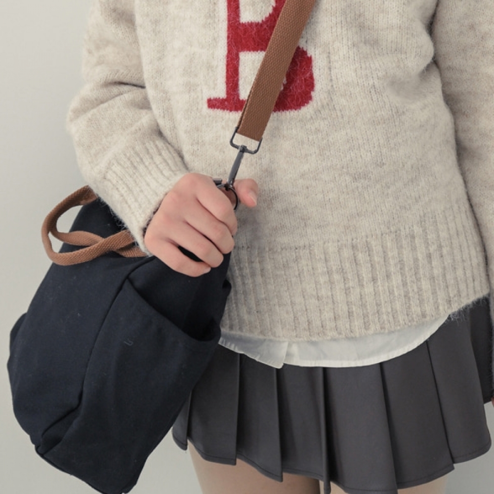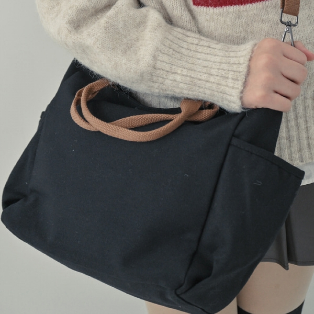 여성 데일리 투포켓 캔버스 메신저백
