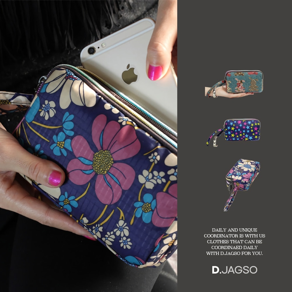 여성 플라워 페인팅 손목트랩 클러치 장지갑
