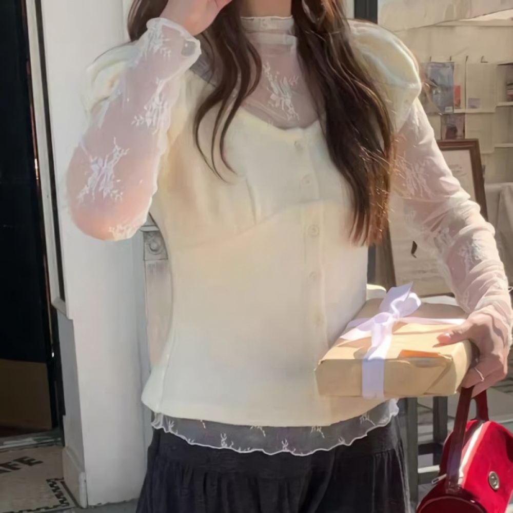 여성 봄 데일리 셔링 퍼프 캡소매 가디건