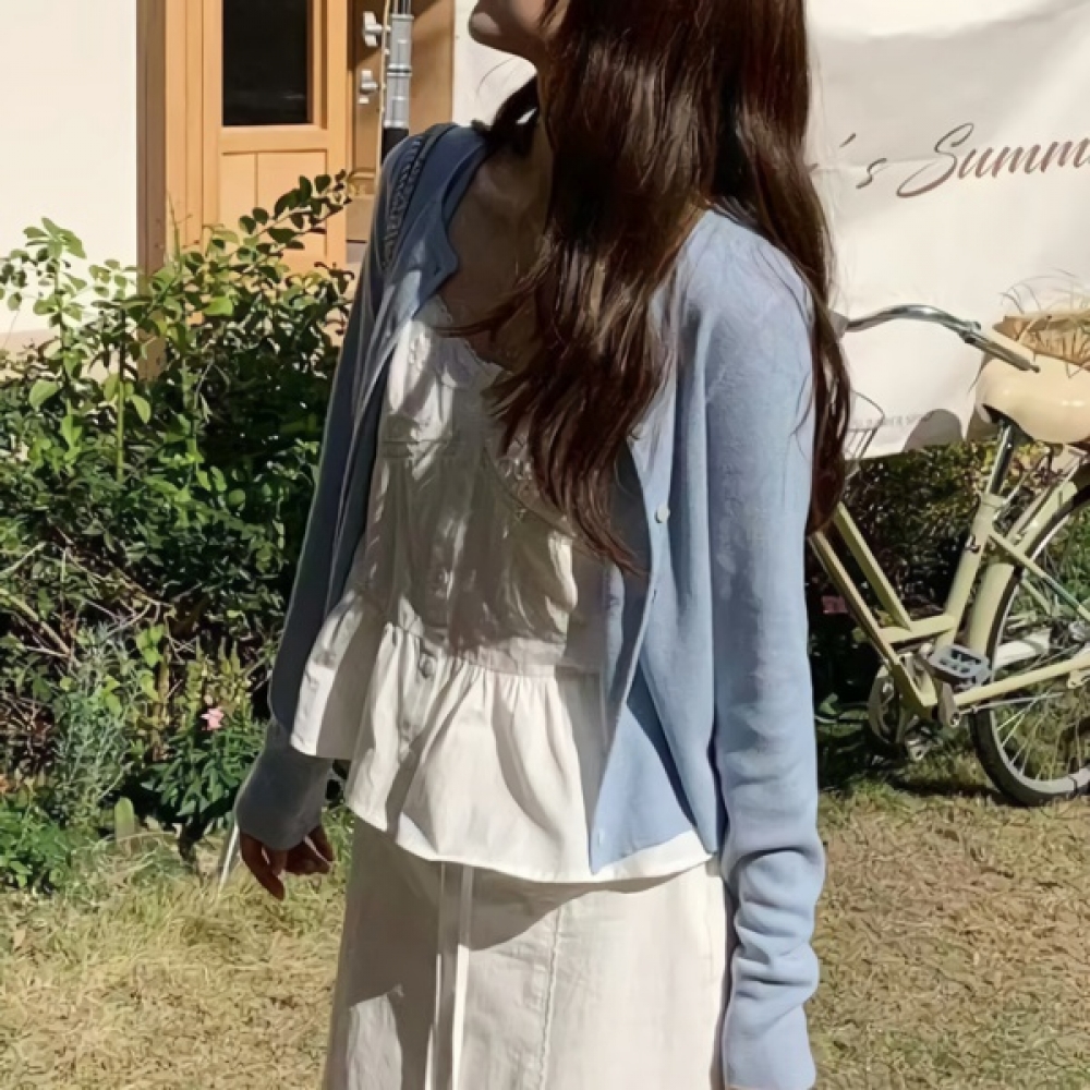 여성 봄 데일리 라운드넥 크롭 가디건