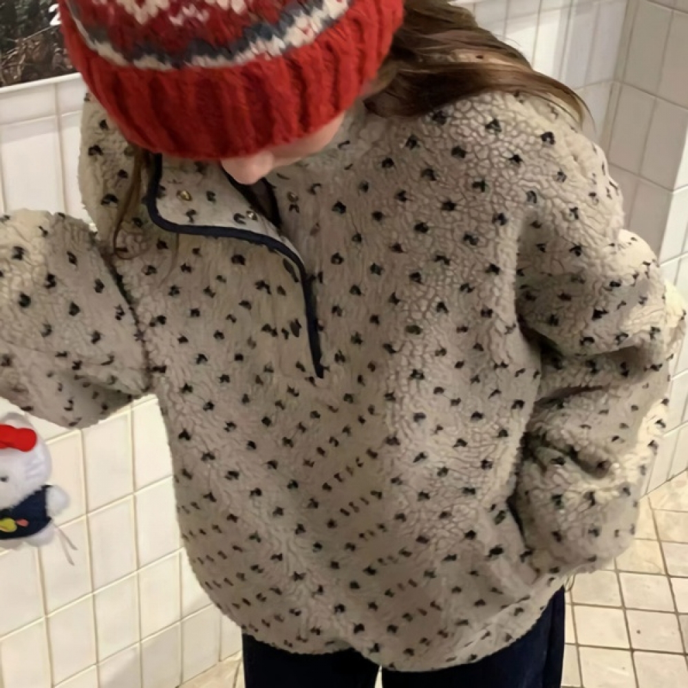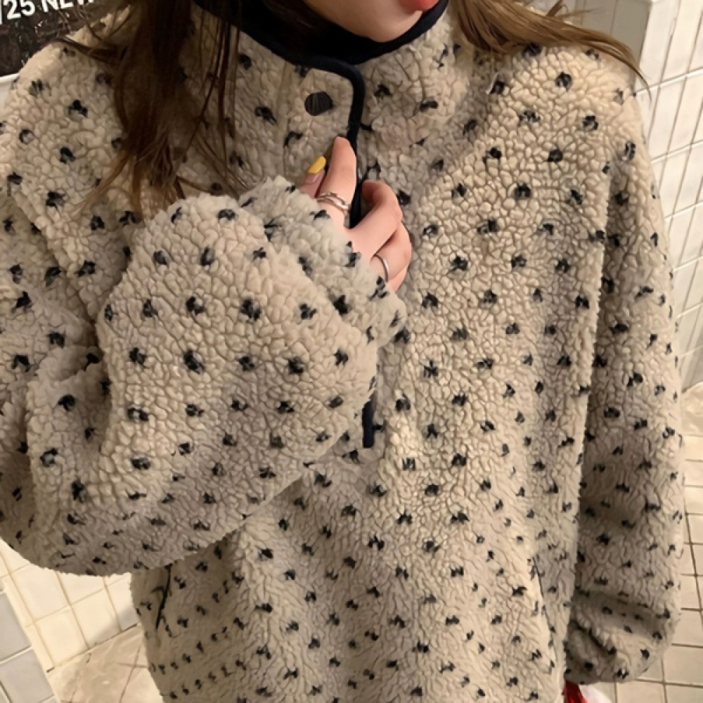 여성 봄 데일리 도트 뽀글이 아노락 티셔츠