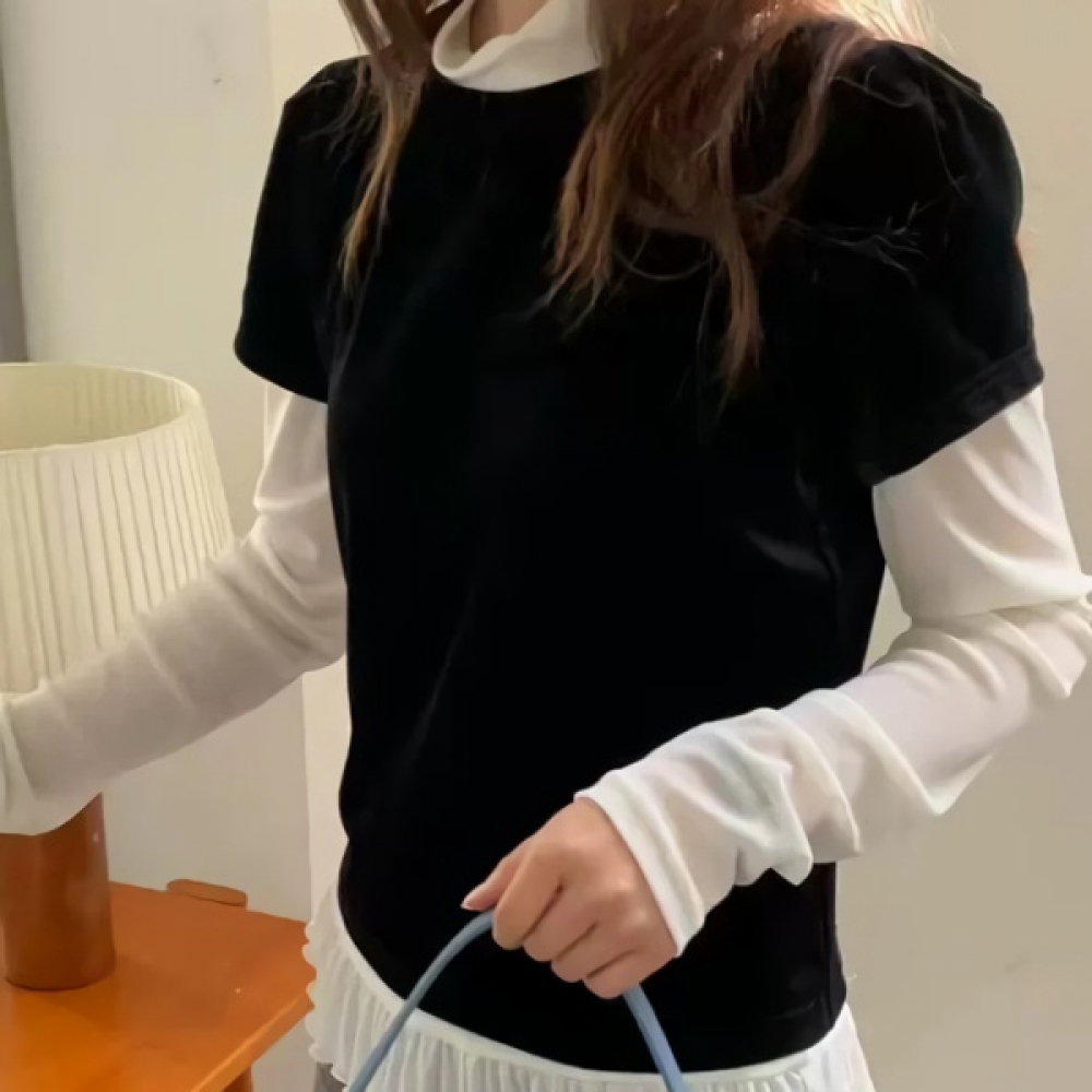 여성 봄 데일리 프릴 시스루 티셔츠
