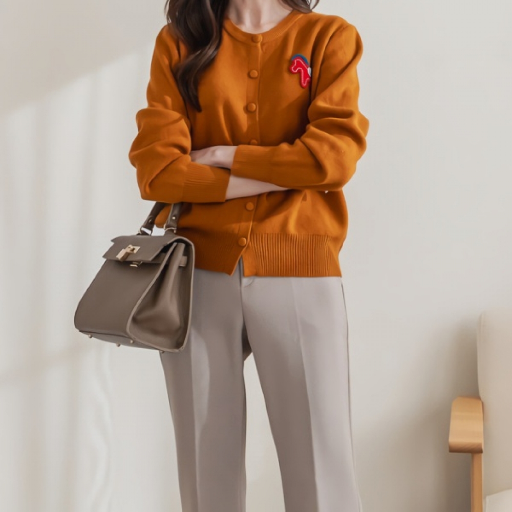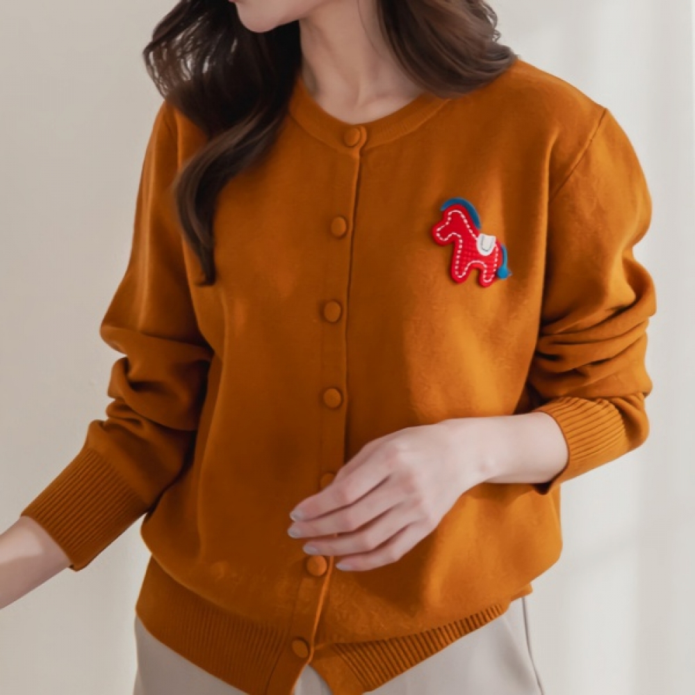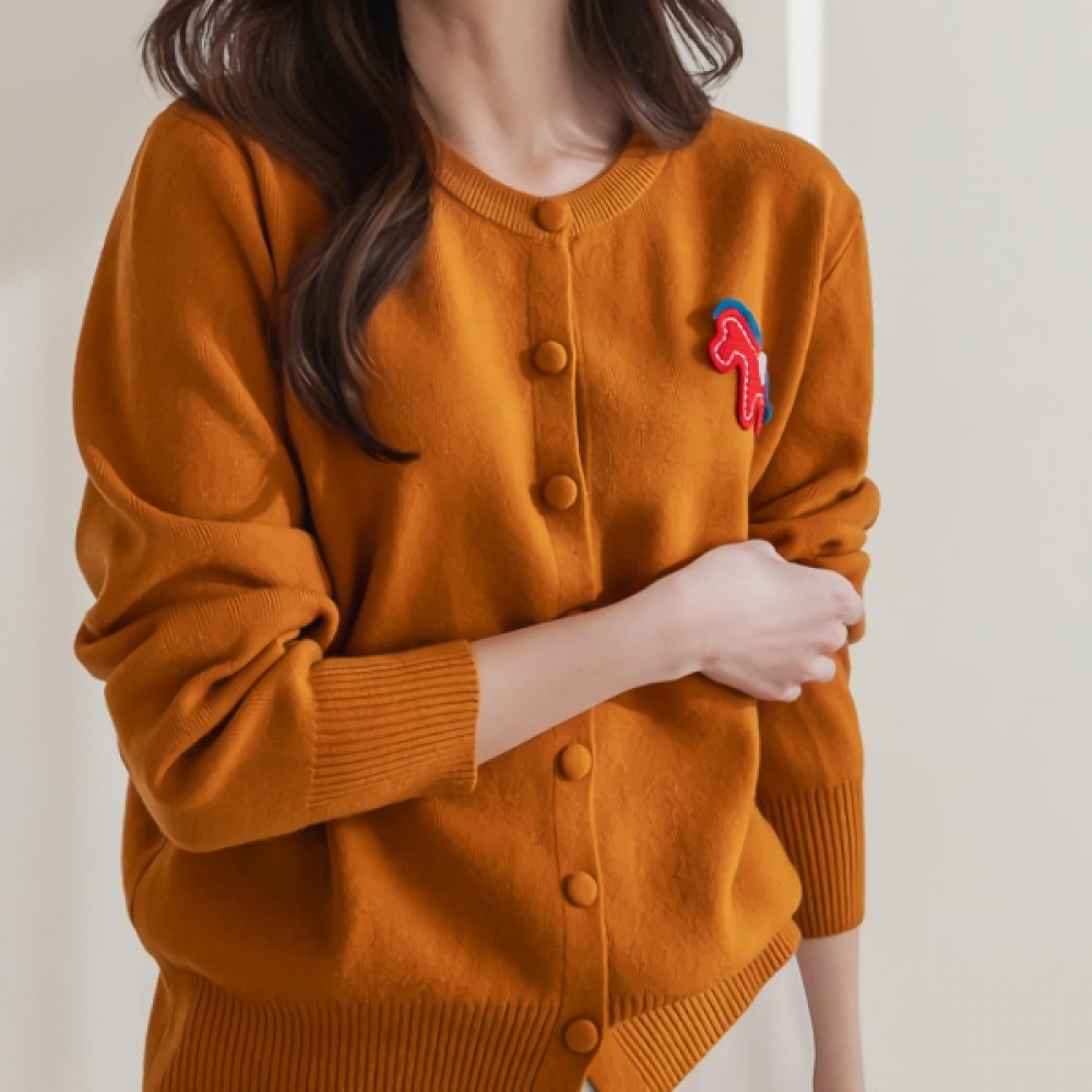 여성 포니 자수 라운드 니트 가디건