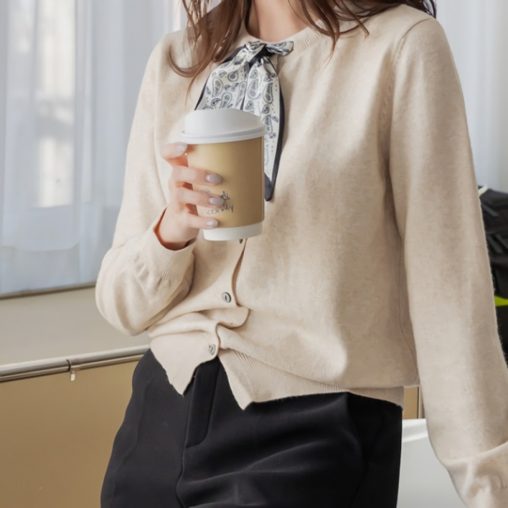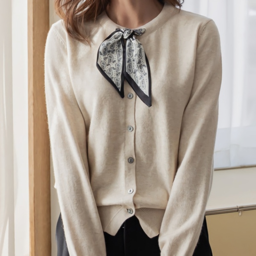 여성 스카프 콤비 기본 라운드 니트 가디건
