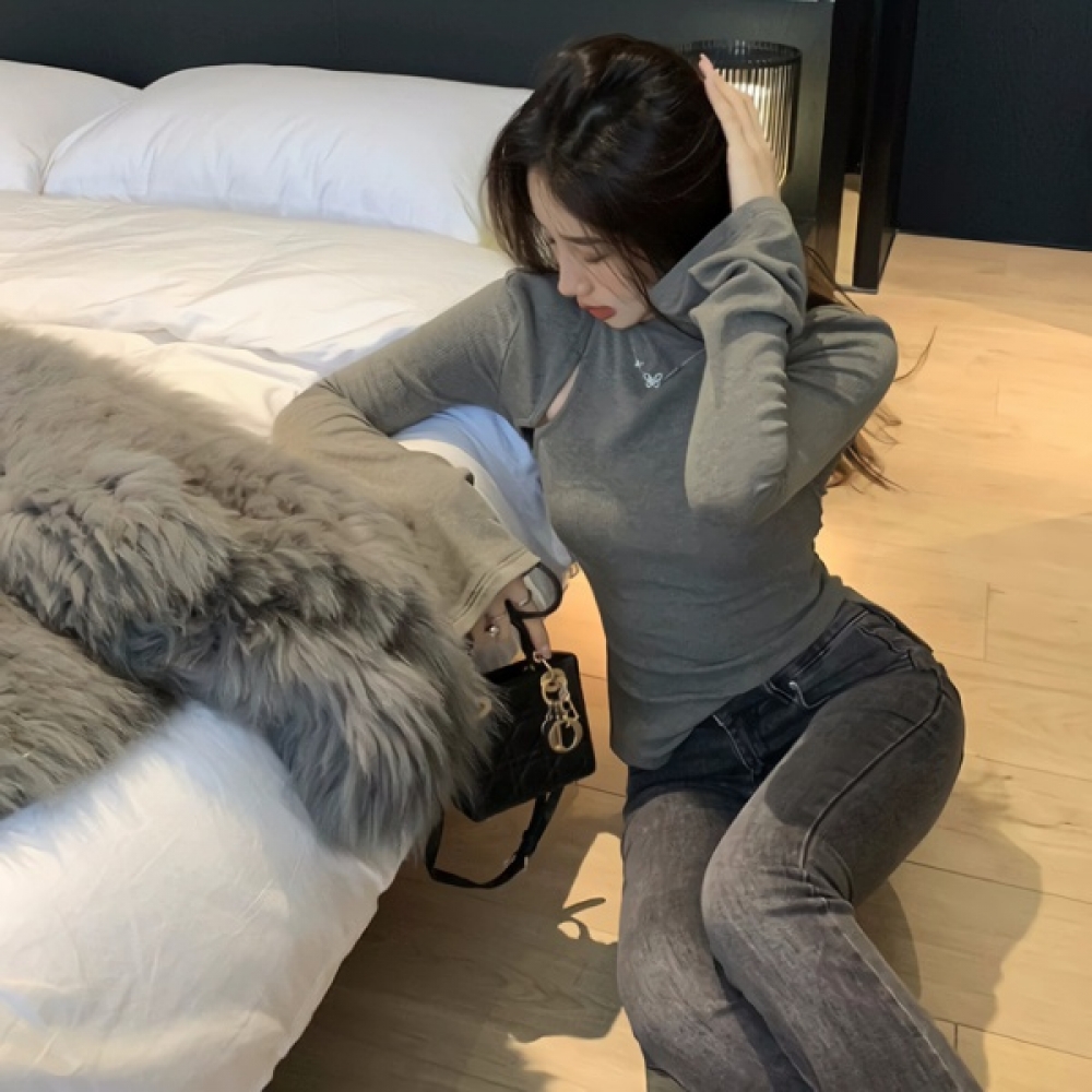 여성 봄 데일리 슬림 보트넥 옆트임 티셔츠
