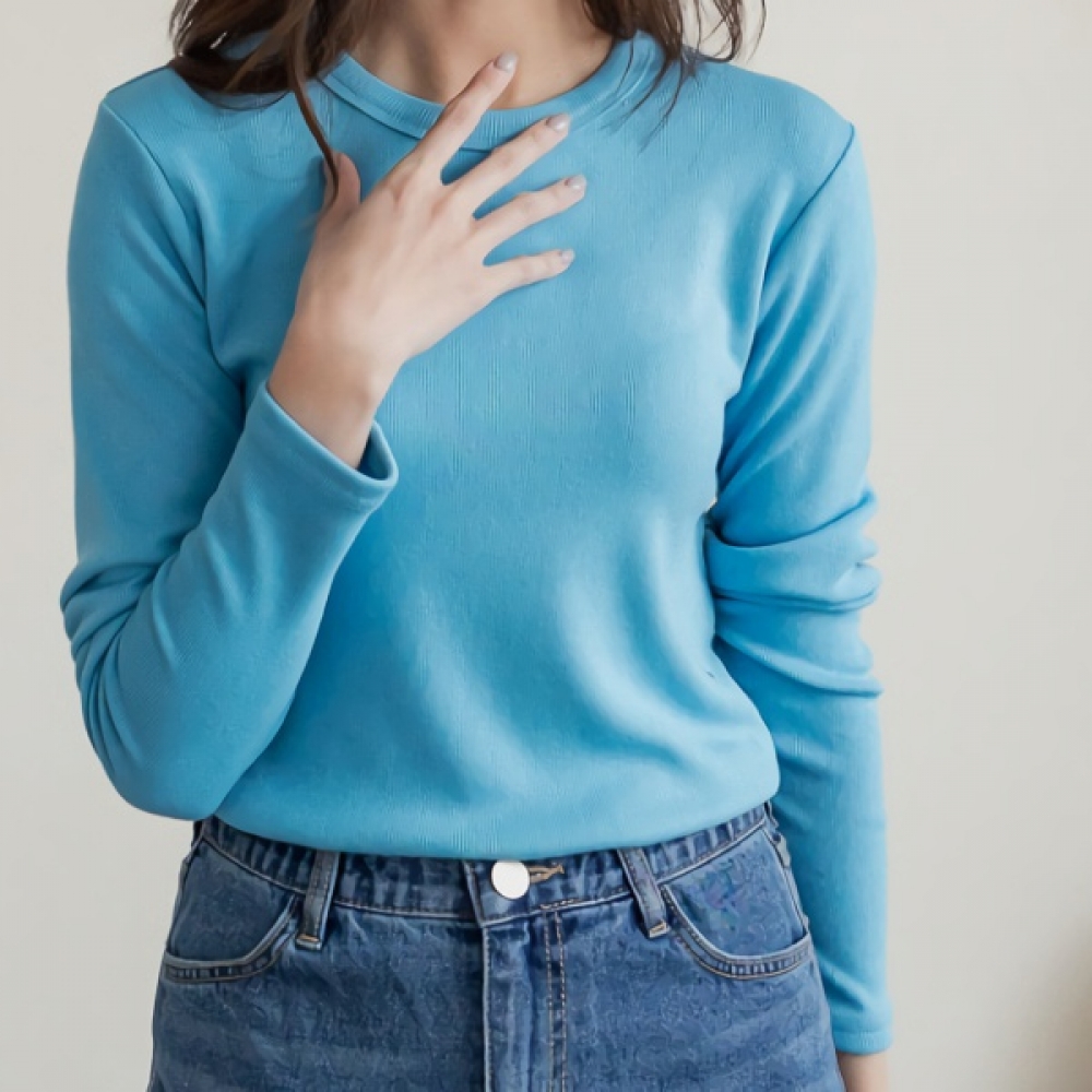 여성 퍼니 베이직 기본 골지 라운드 티셔츠