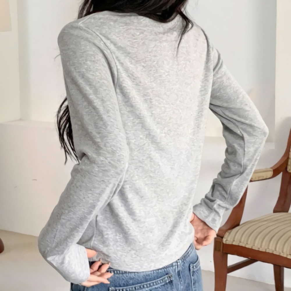 여성 봄 데일리 물결 시스루 티셔츠