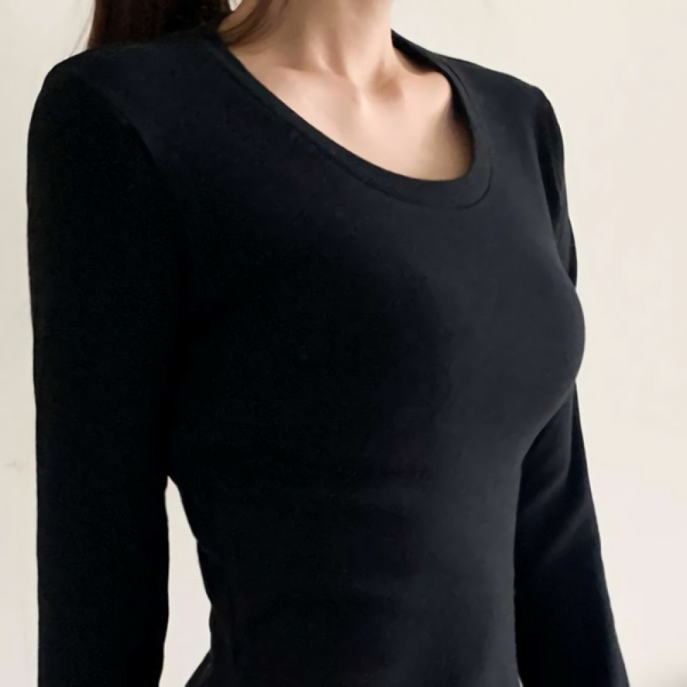 여성 쫀쫀 스판 유넥 밑단 굴림 슬림 긴팔티
