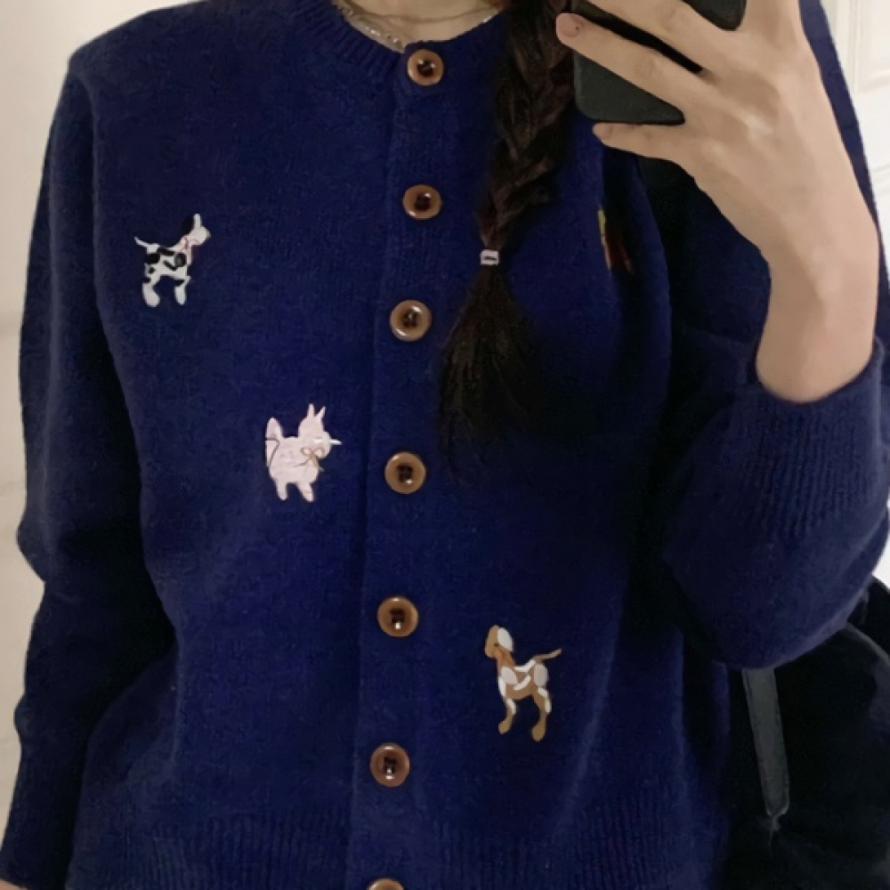 여성 데일리 봄 도톰 동물자수 니트 가디건