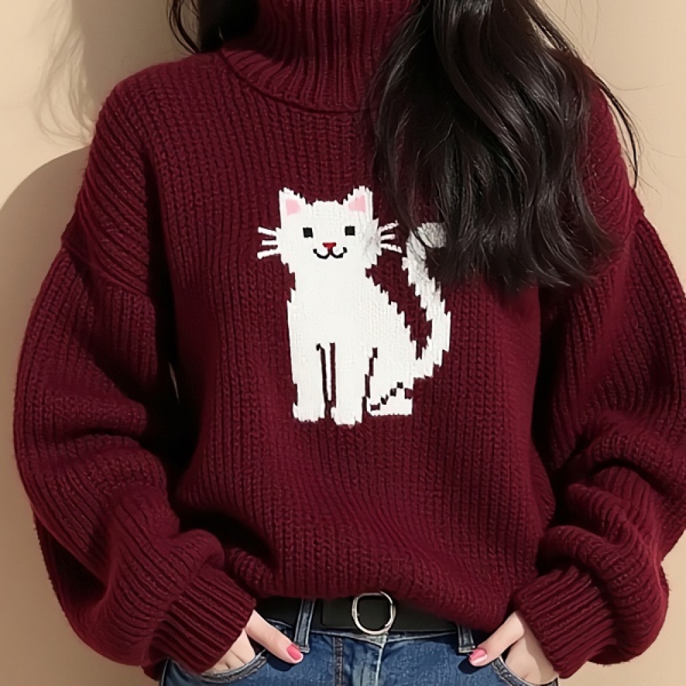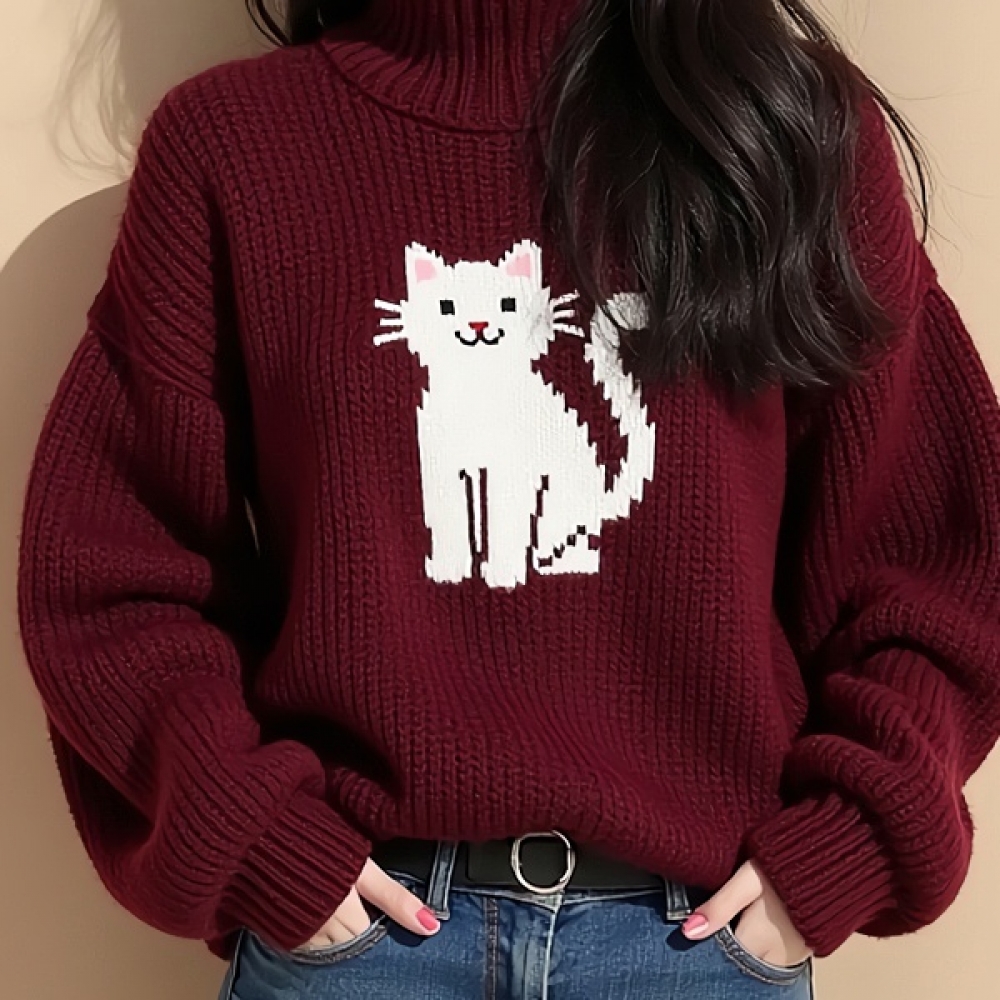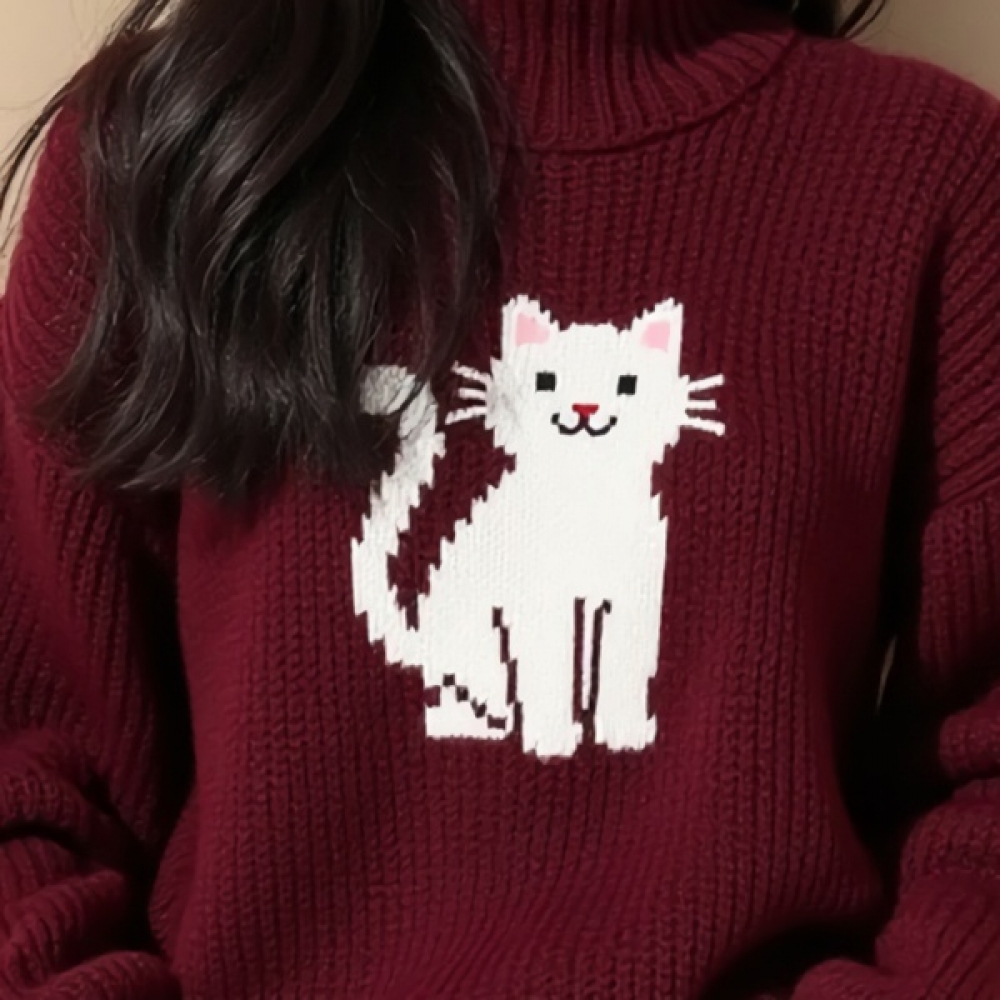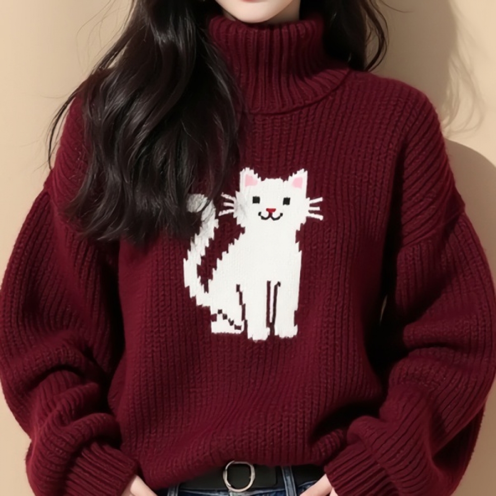 여친룩 폴라넥 고양이 니트 스웨터