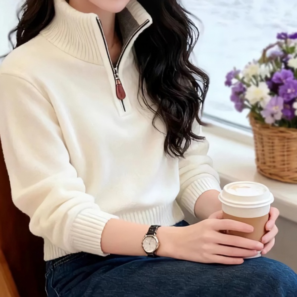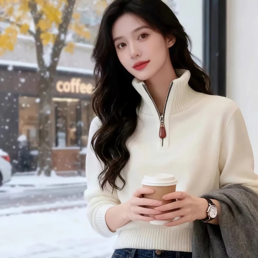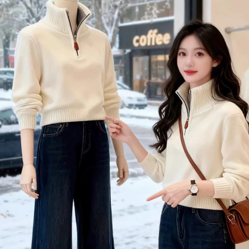 여성 하이넥 겨울 데일리 반집업 니트 스웨터