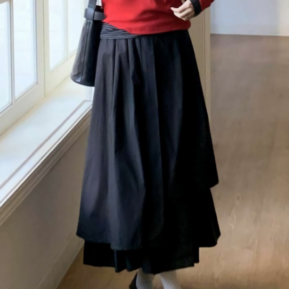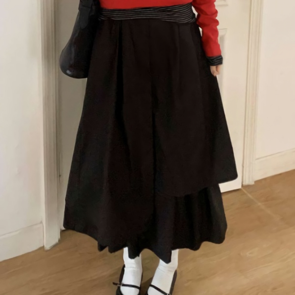 여성 봄 데일리 허리끈 롱 스커트