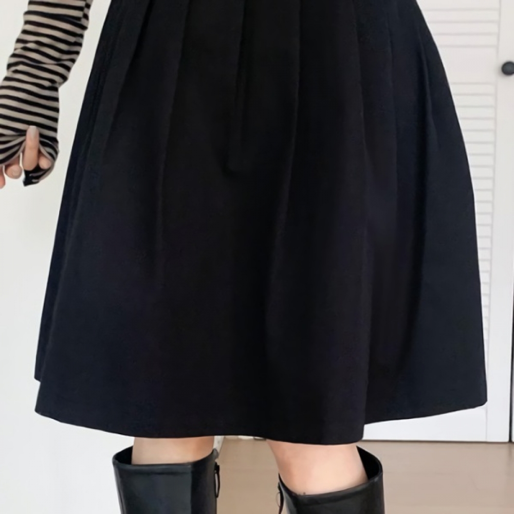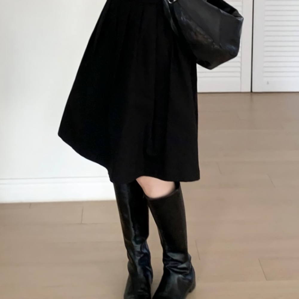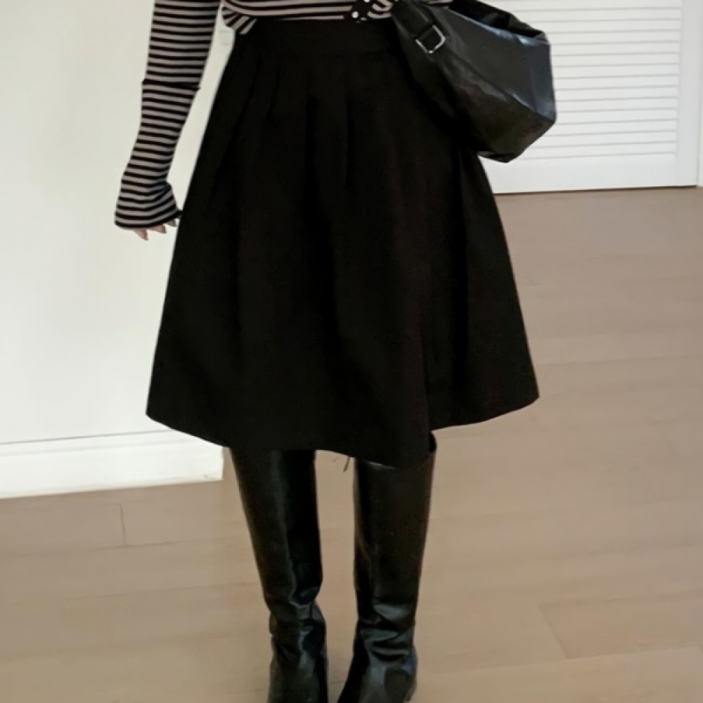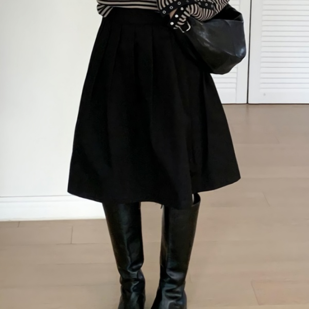 여성 페미닌 플리츠 뒷밴딩 미디스커트