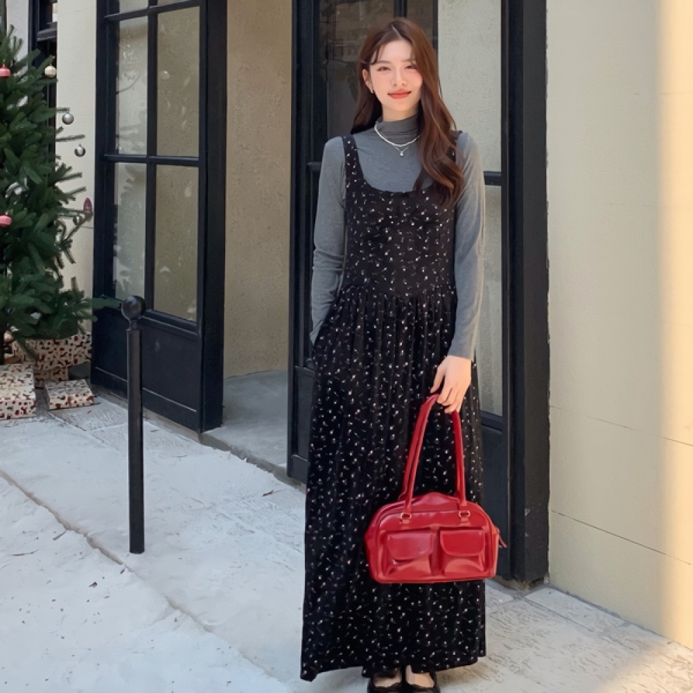 여성 플라워 스퀘어넥 롱 치마원피스