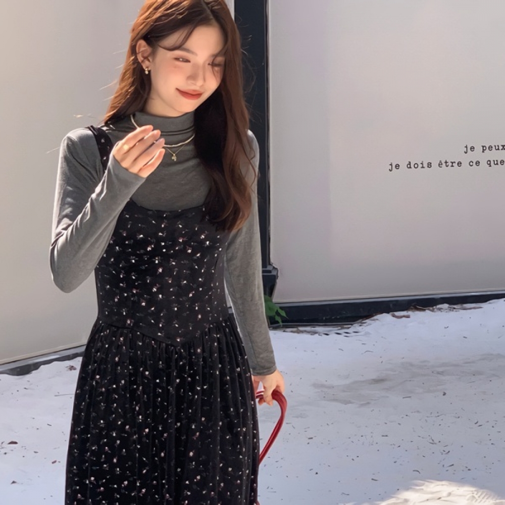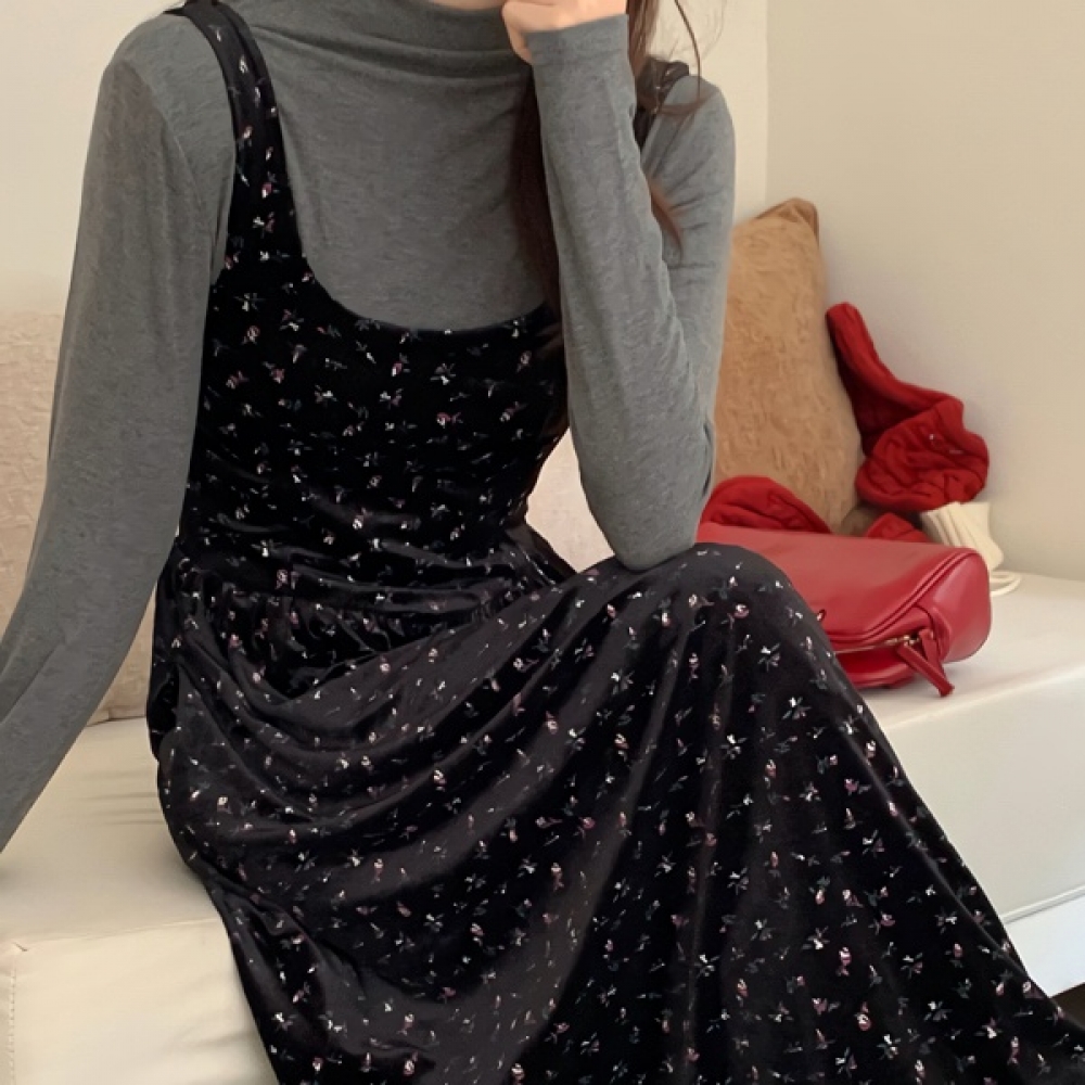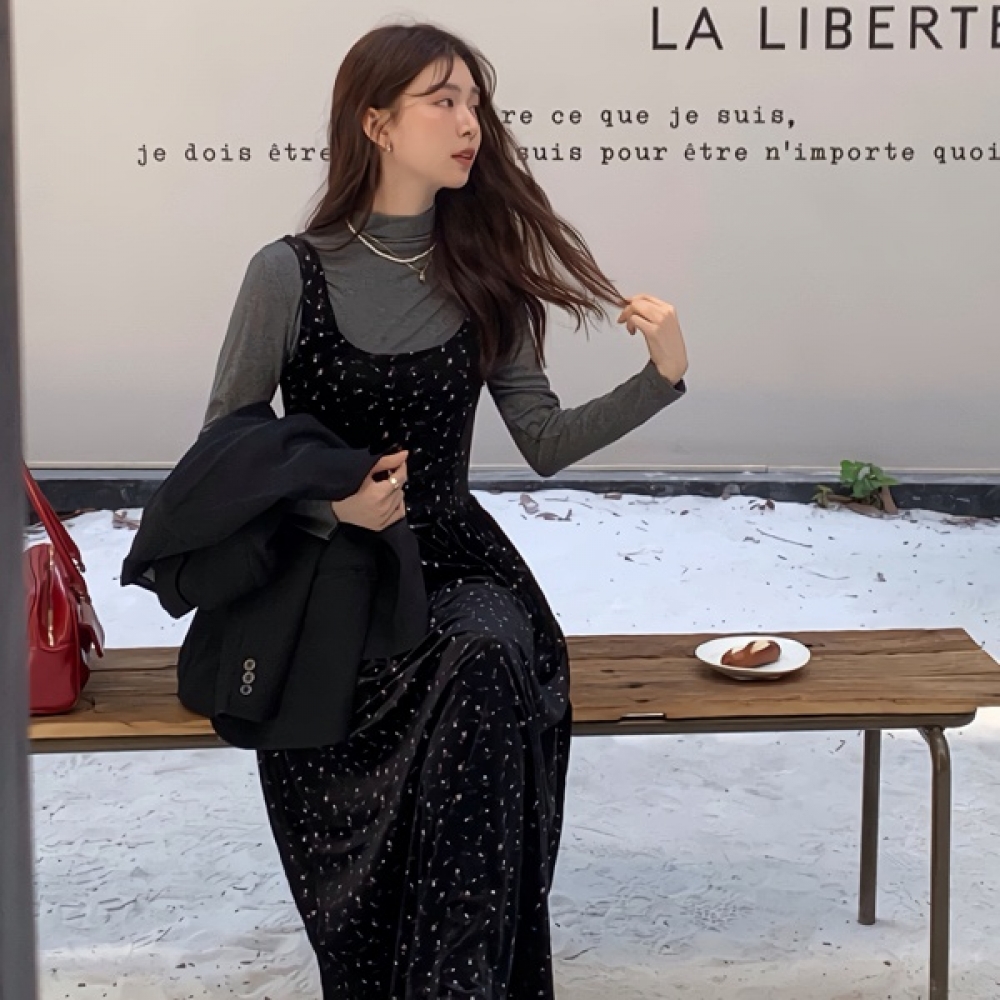 여성 봄 하이엔드 블랙 롱원피스