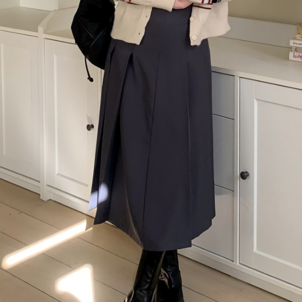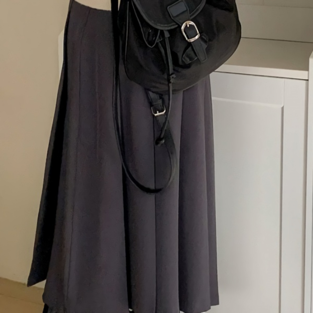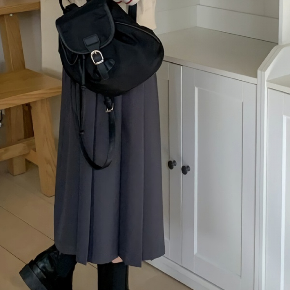 여성 봄 플리츠 핀턱 스판 롱 스커트