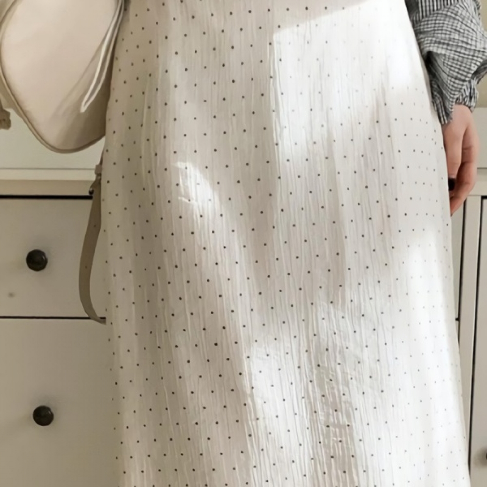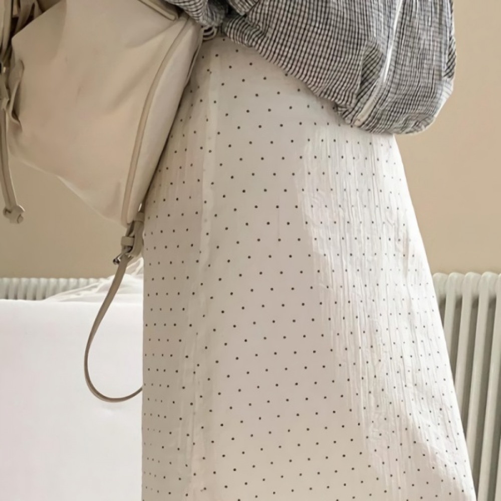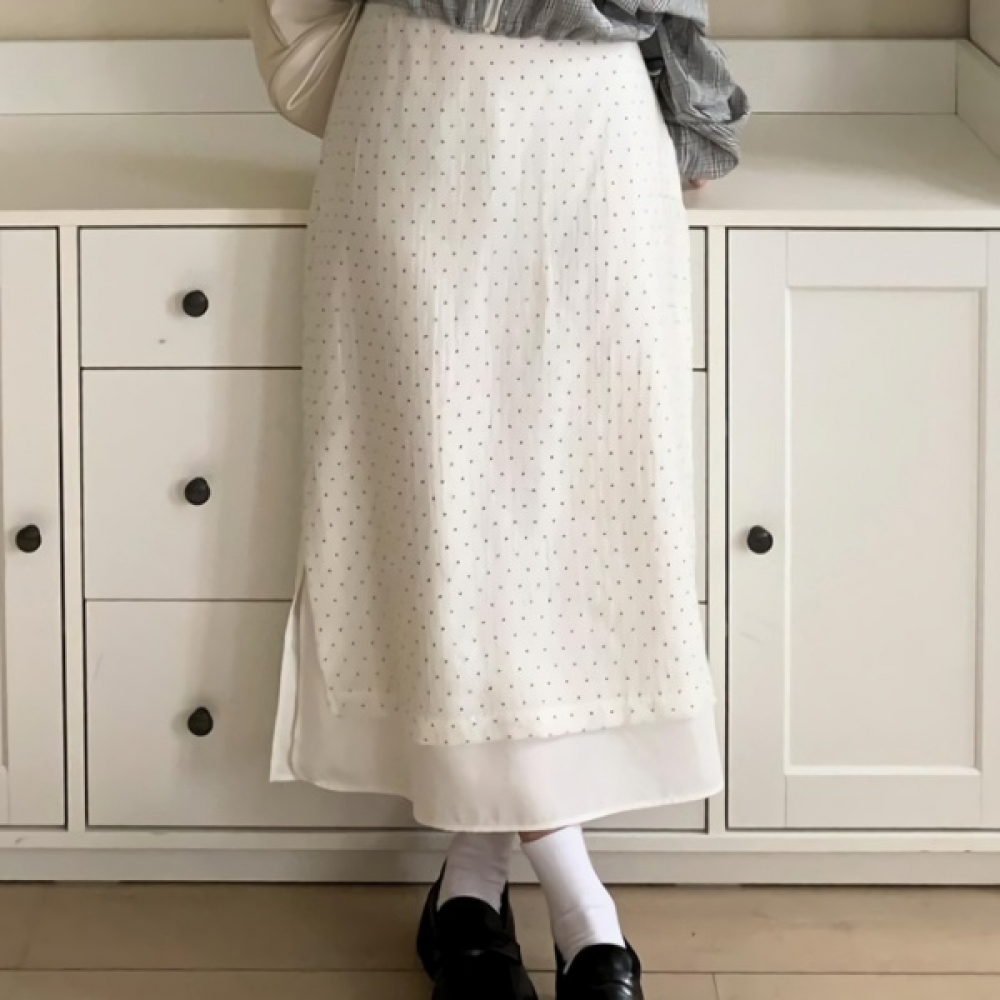 여성 봄 도트 시스루 H라인 롱스커트