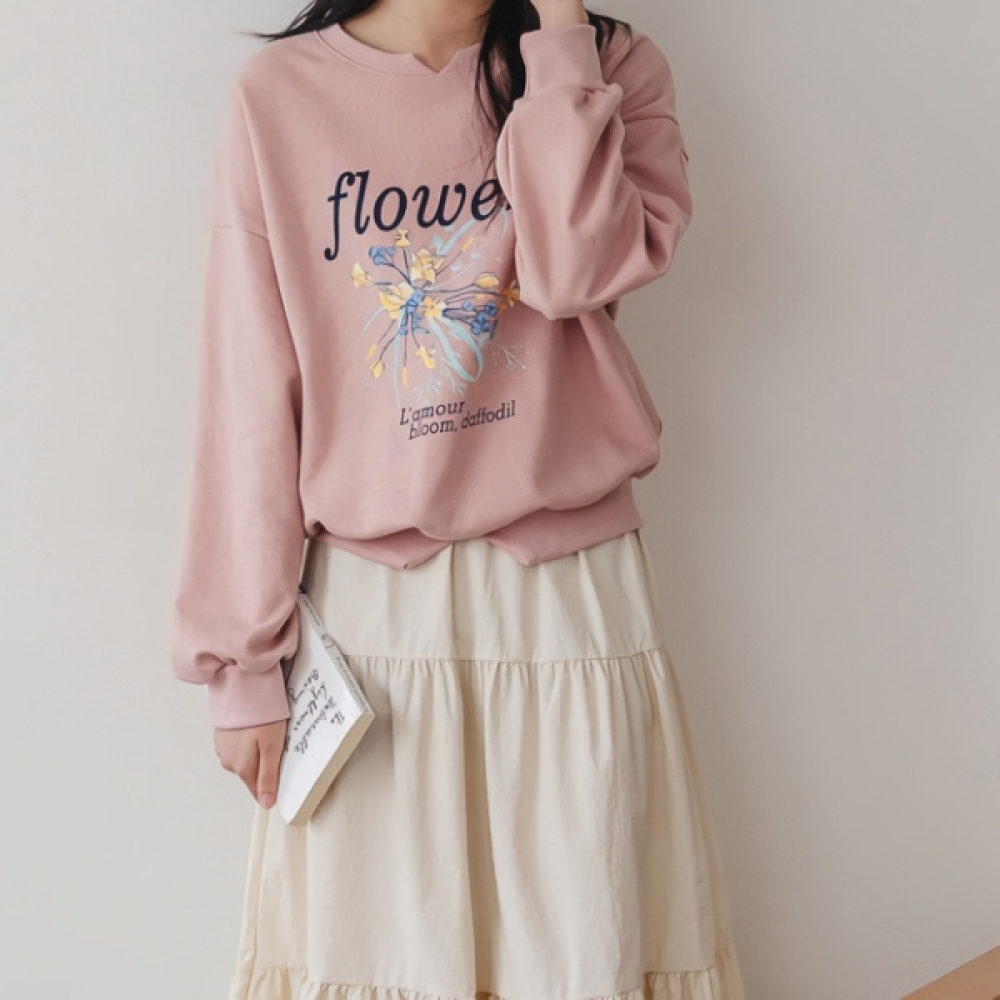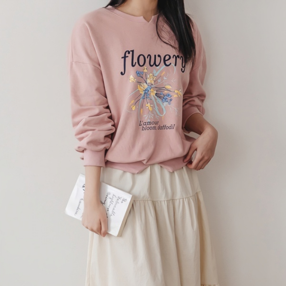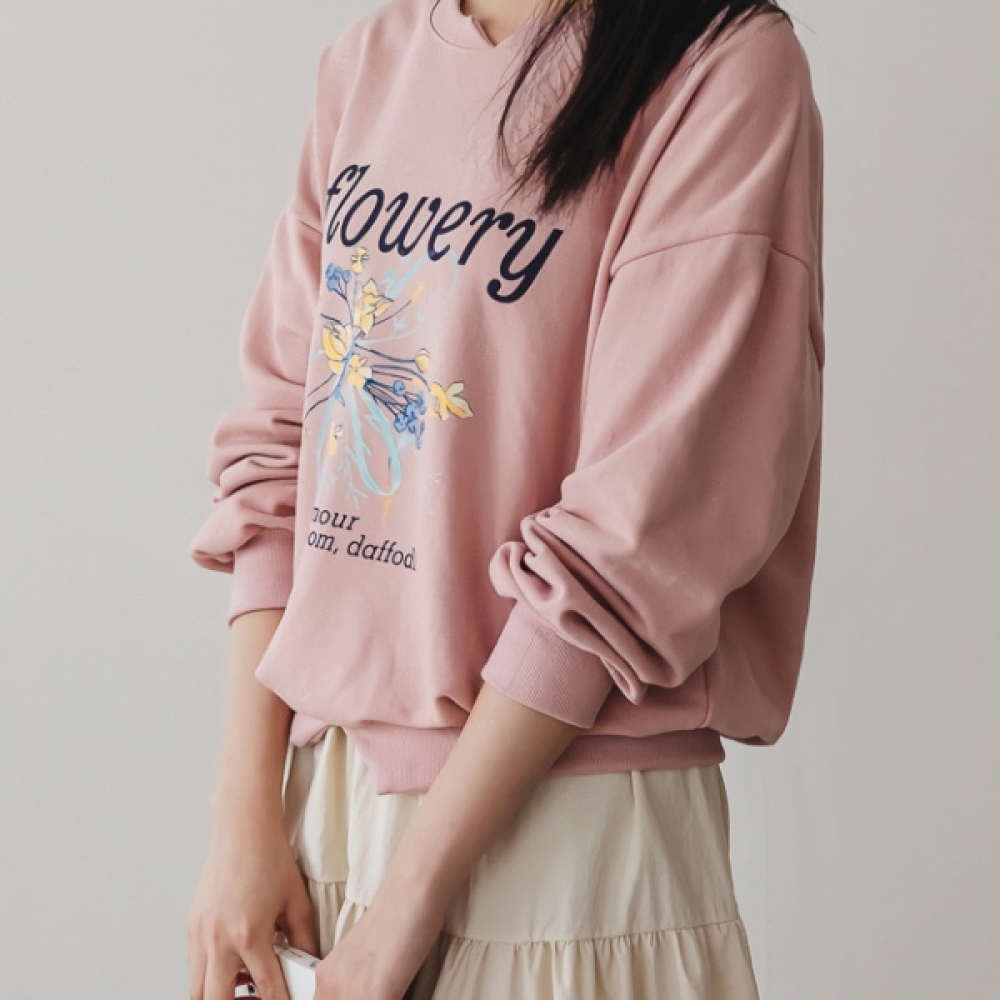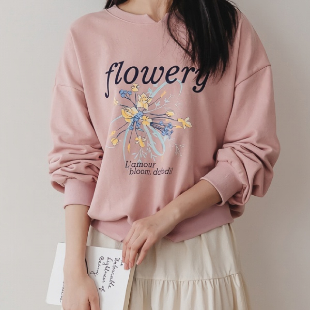 여성 봄 플라워리 나염 맨투맨 티셔츠