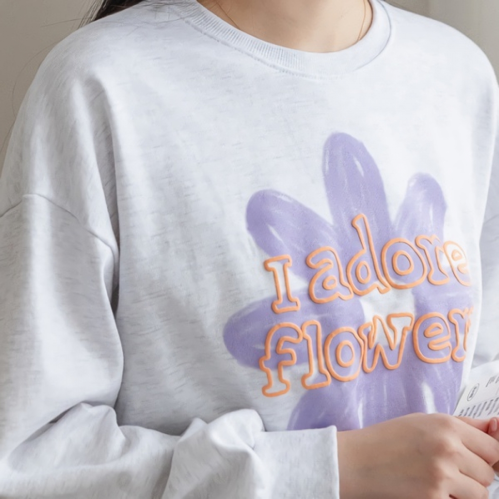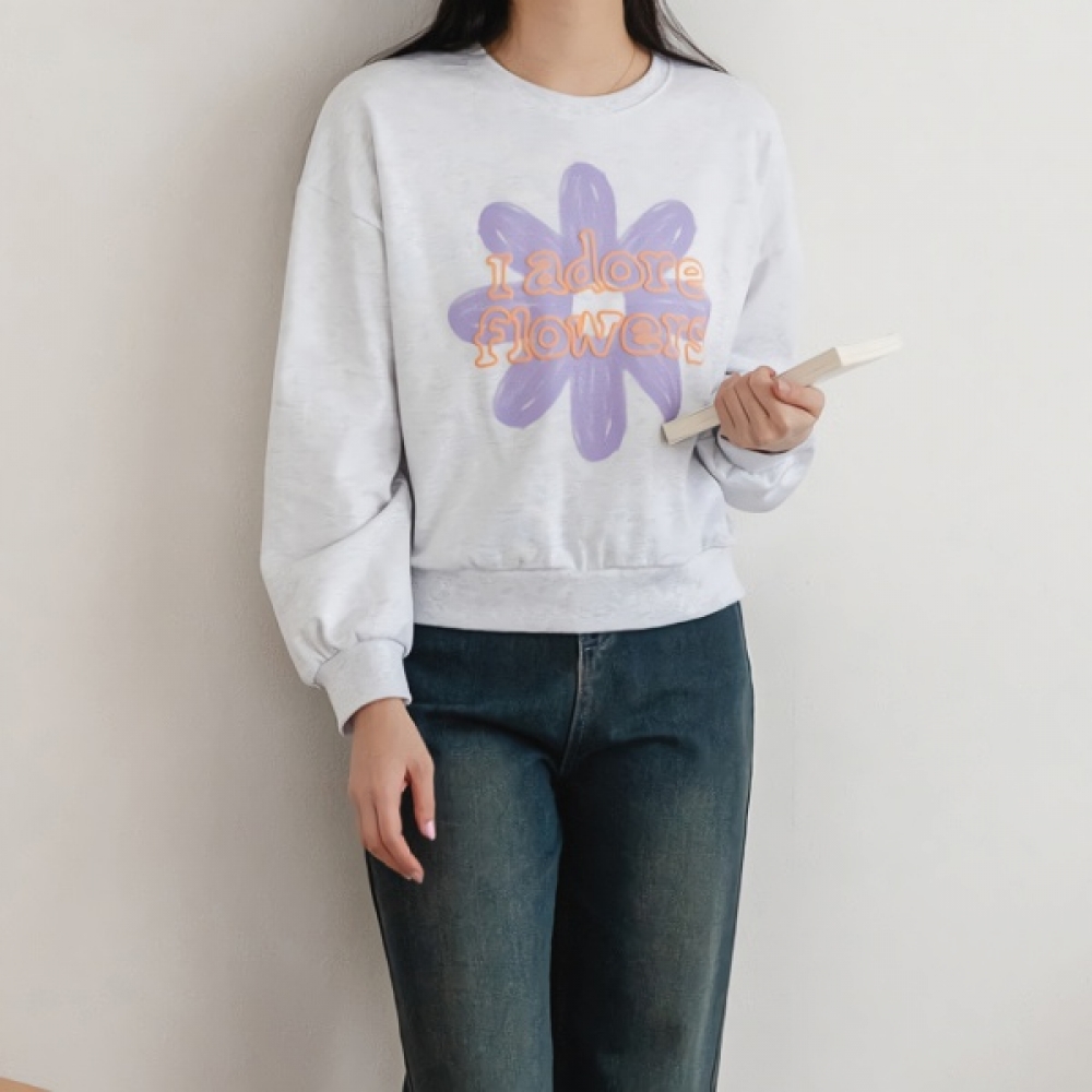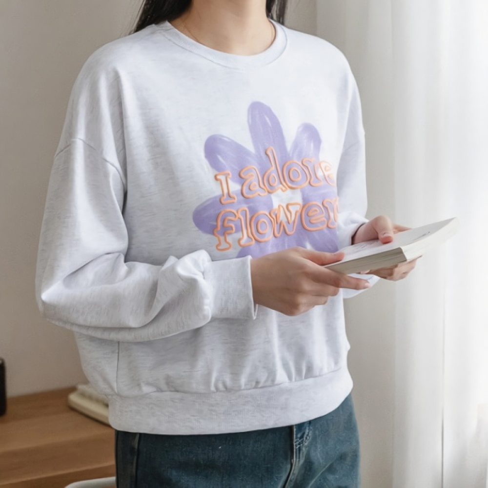 여성 데이지 발포 나염 맨투맨 티셔츠