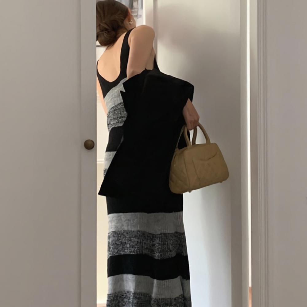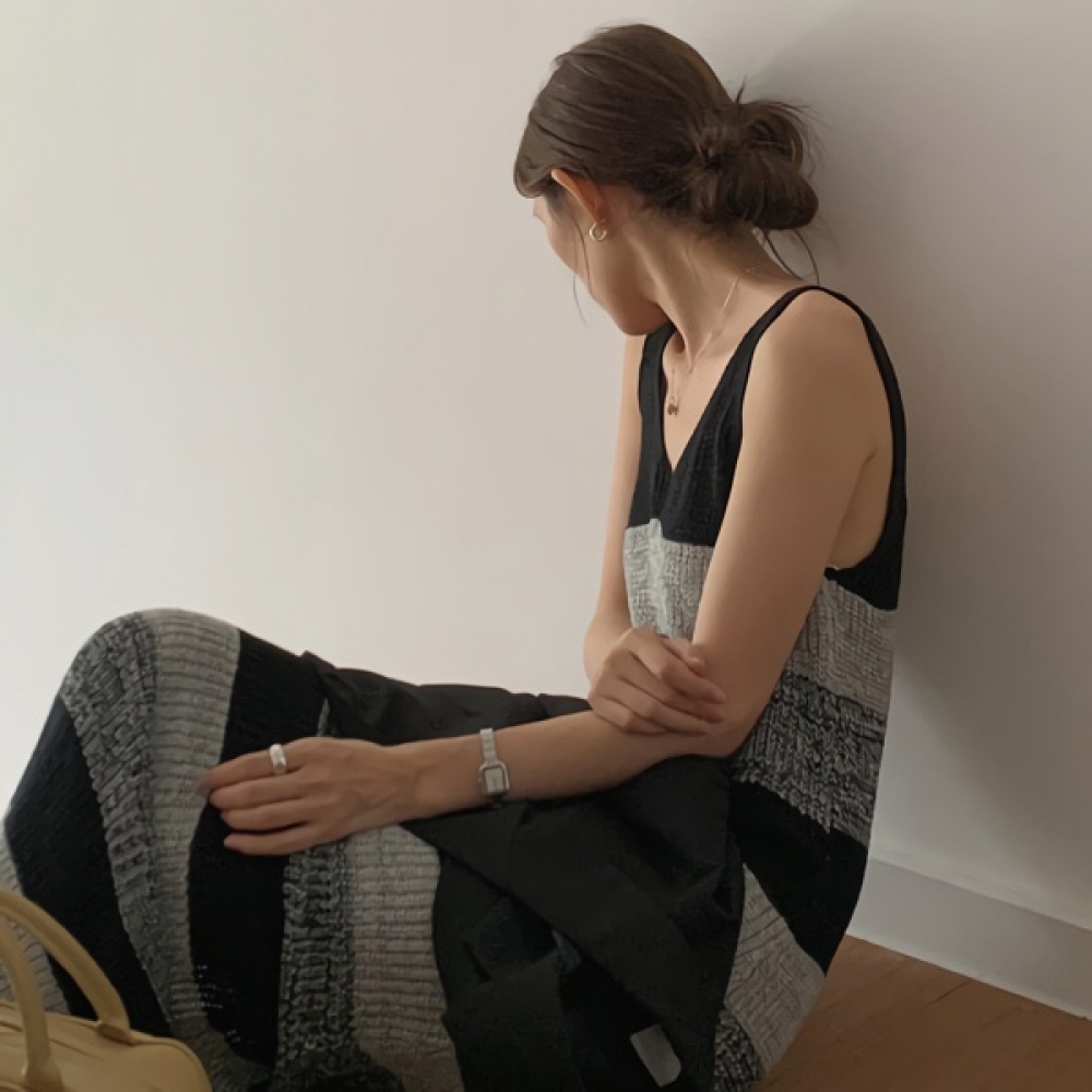 여성 봄 데일리 단가라 민소매 니트 원피스