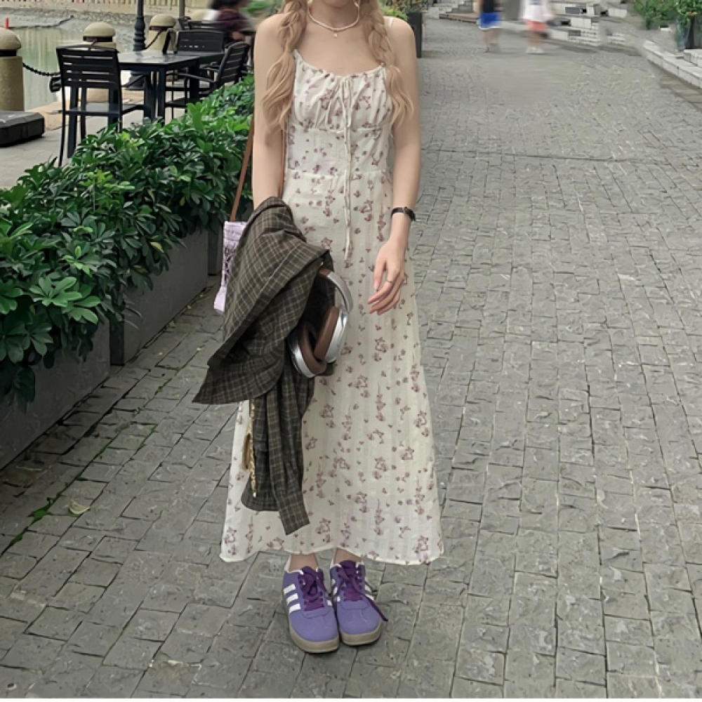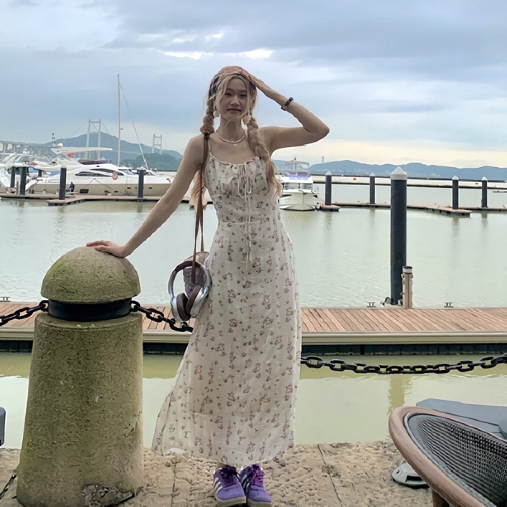 여성 봄 데일리 플라워 끈나시 롱원피스