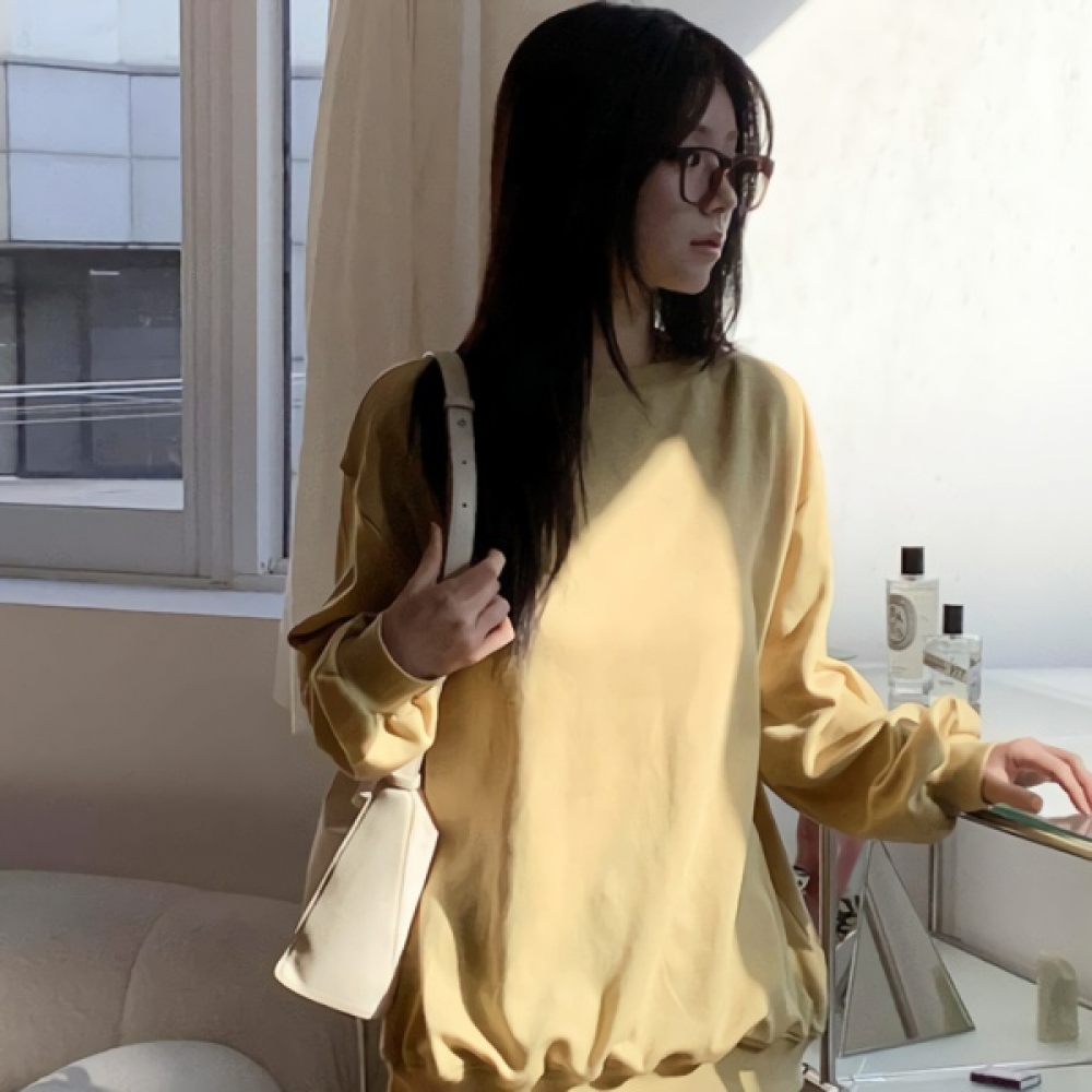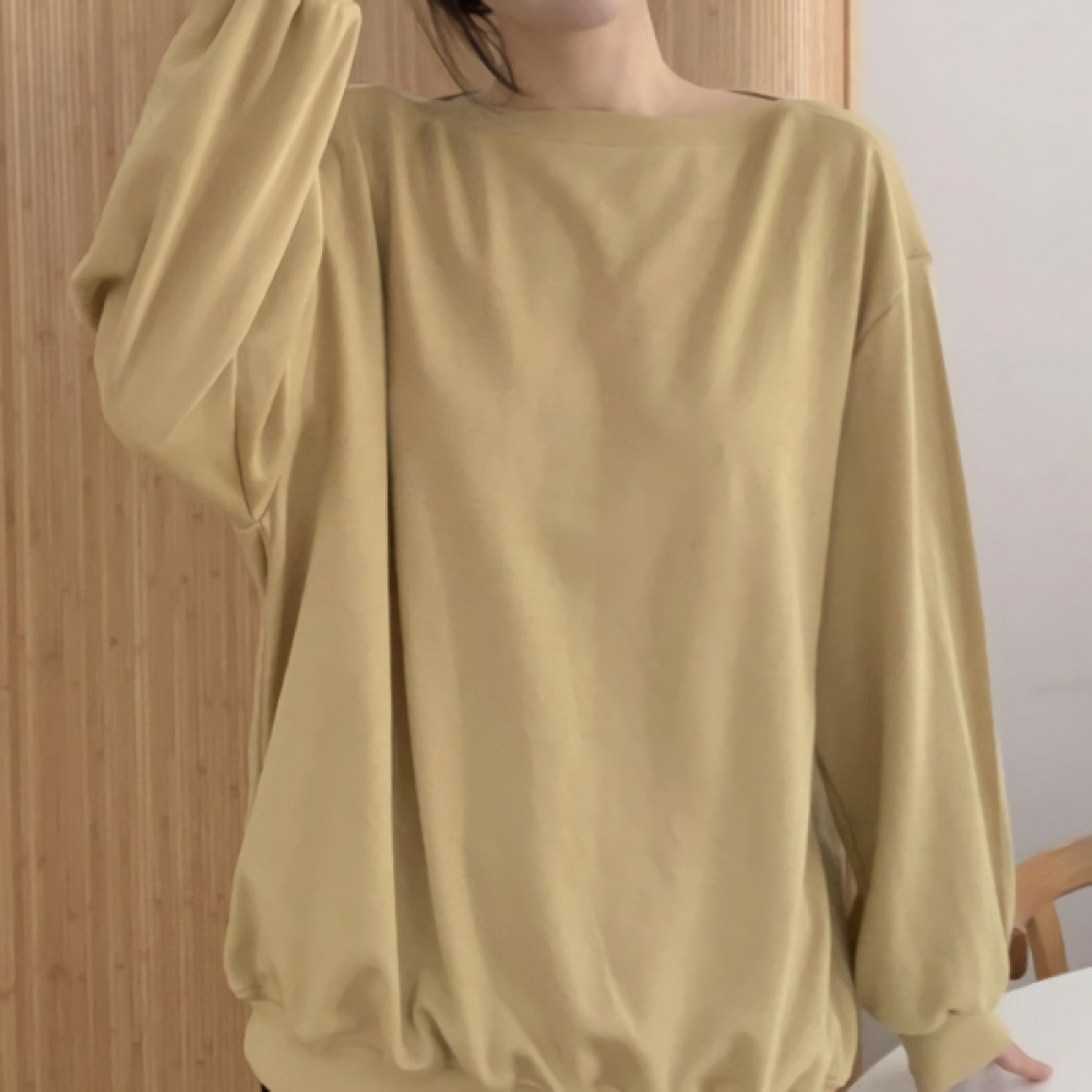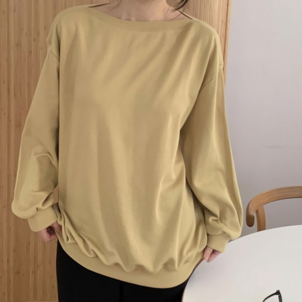 여성 봄 데일리 루즈핏 보트넥 코튼 맨투맨