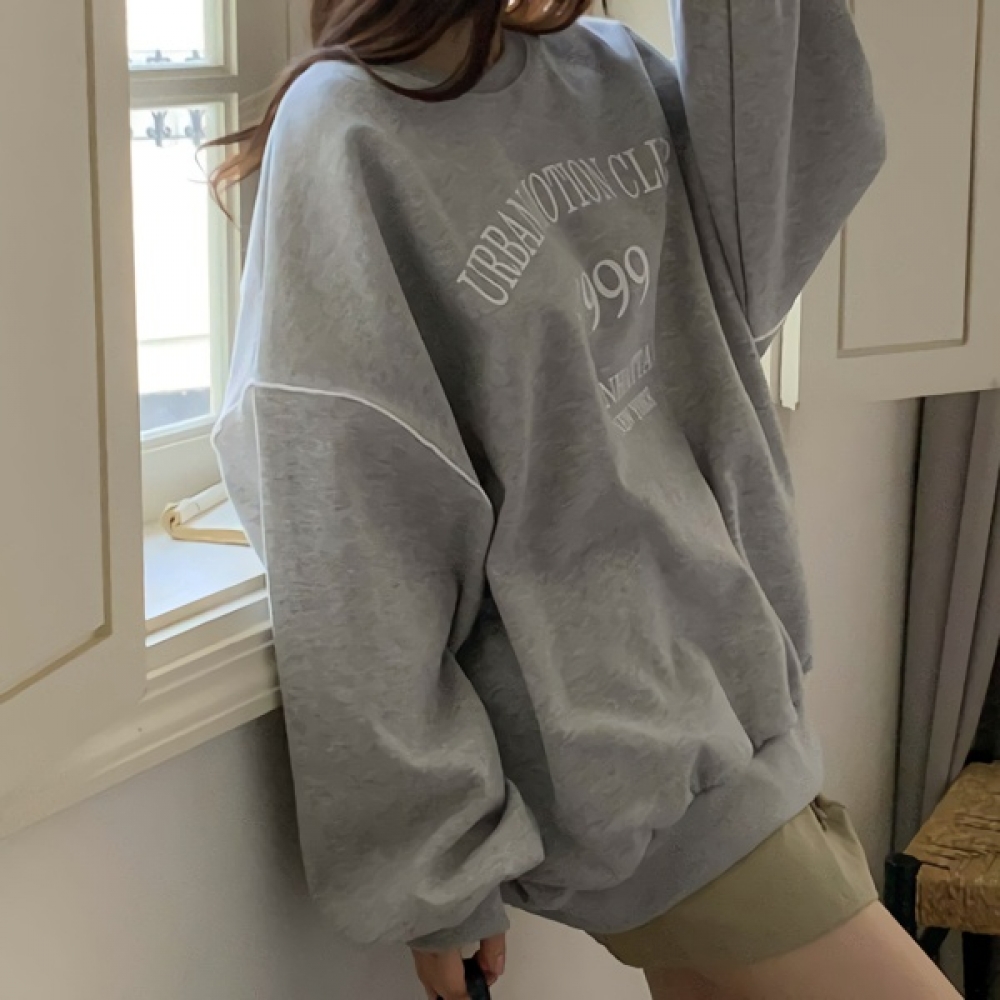 여성 데일리 루즈핏 배색 레터링 맨투맨