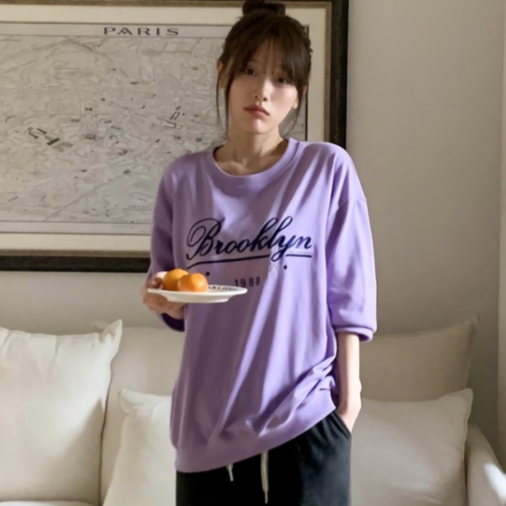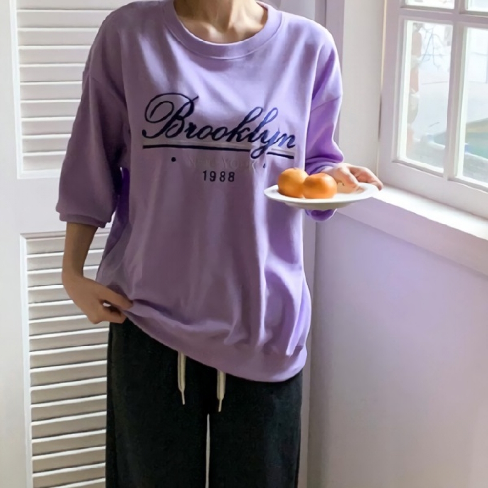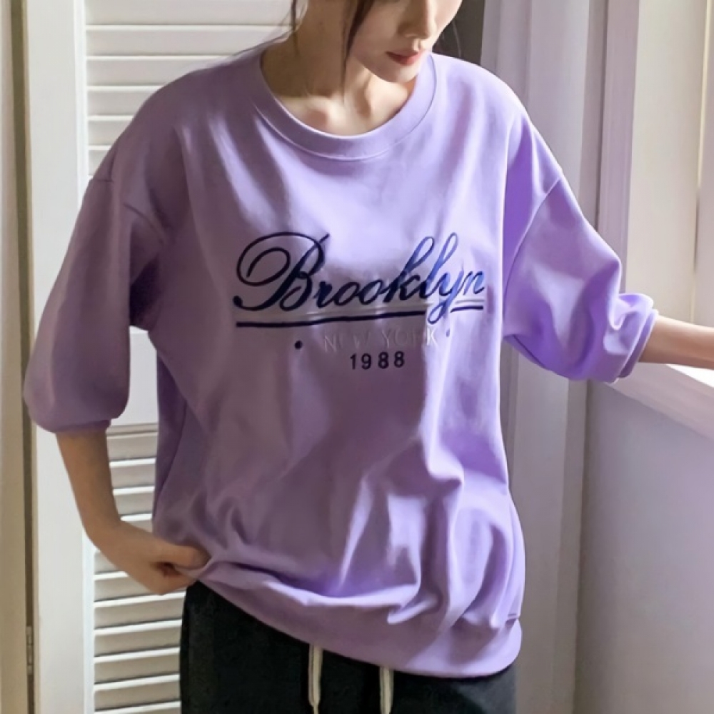 여성 클래식 레터링 자수 7부 맨투맨