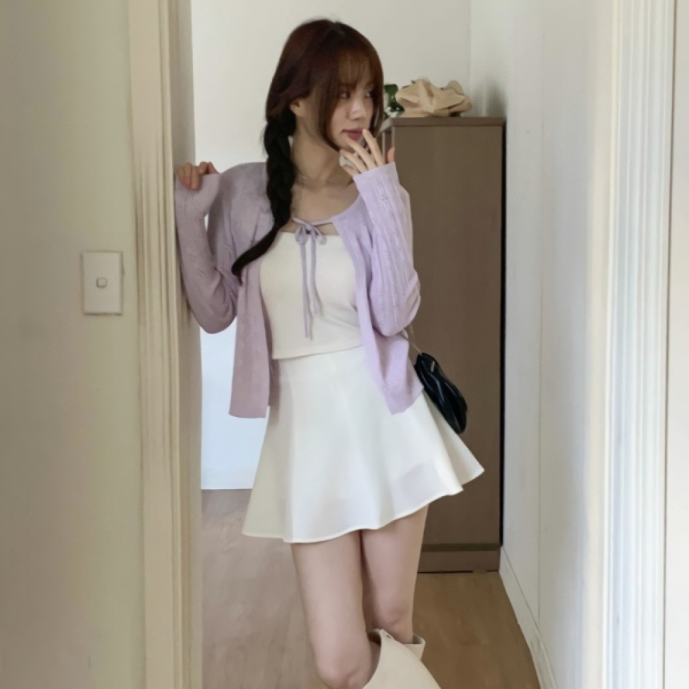 H라인 벨트 세트 코튼 치마바지 미니 스커트