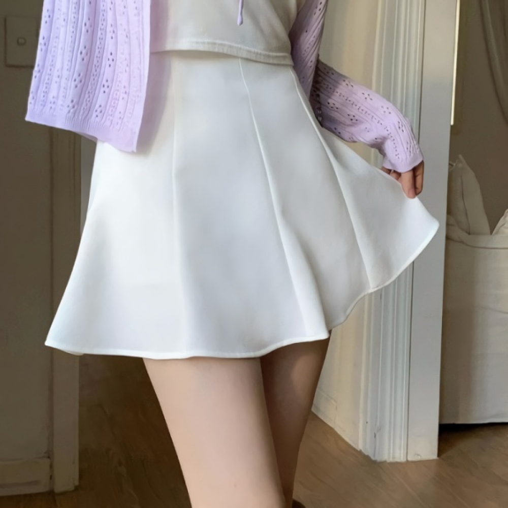 여성 봄 밴딩 플레어 핀턱 미니스커트