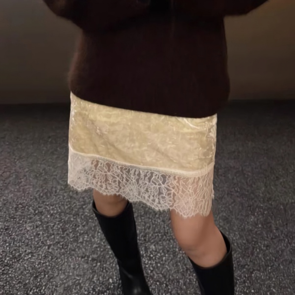 여성 봄 벨벳 레이스 나시 원피스