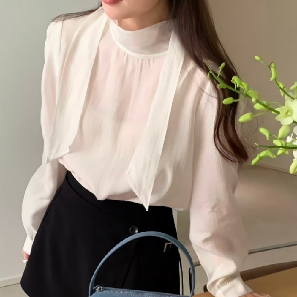 여성 봄 데일리 타이 퍼프 블라우스