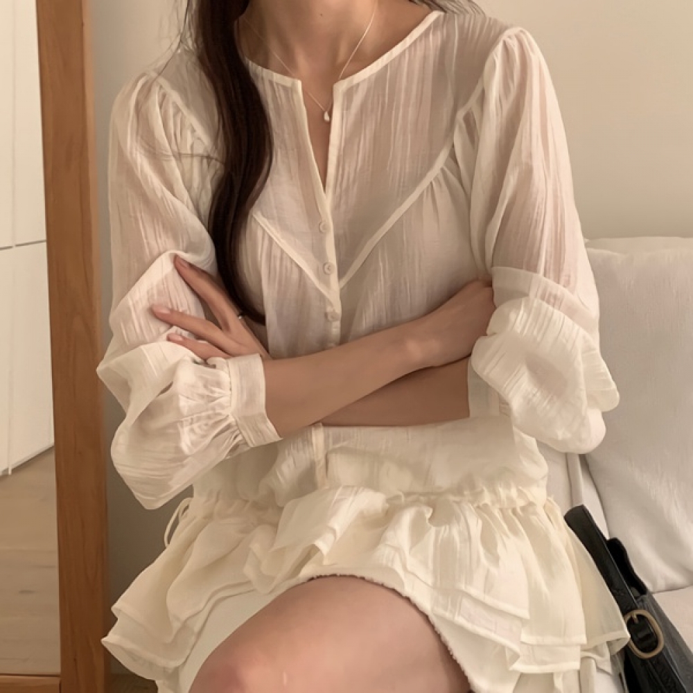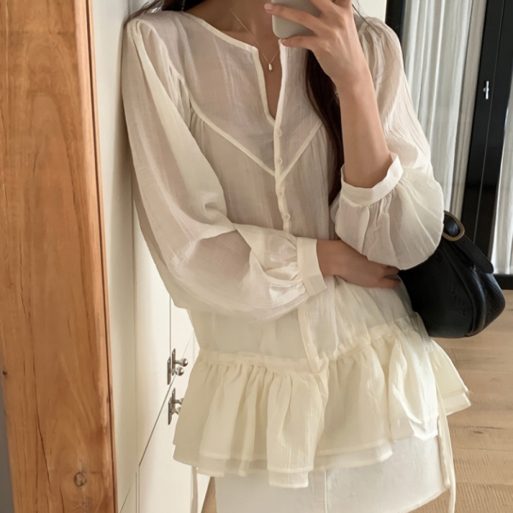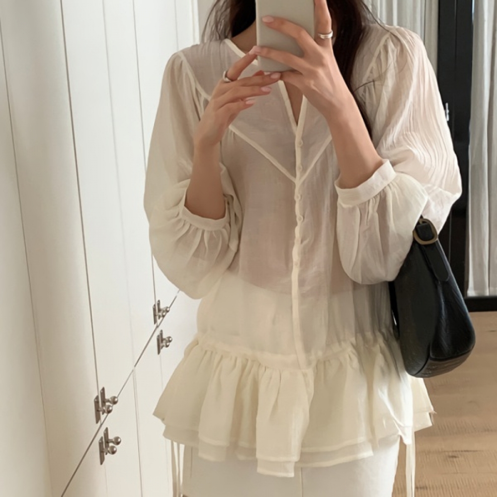 여성 봄 데일리 스트링 캉캉 블라우스