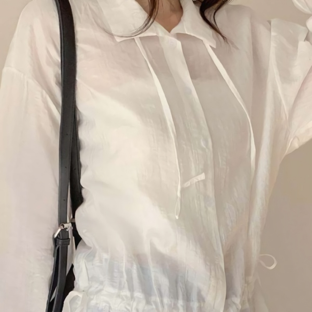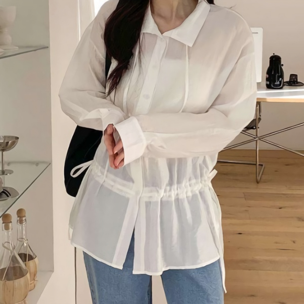 루즈핏 스트링 레이어드 긴팔 블라우스