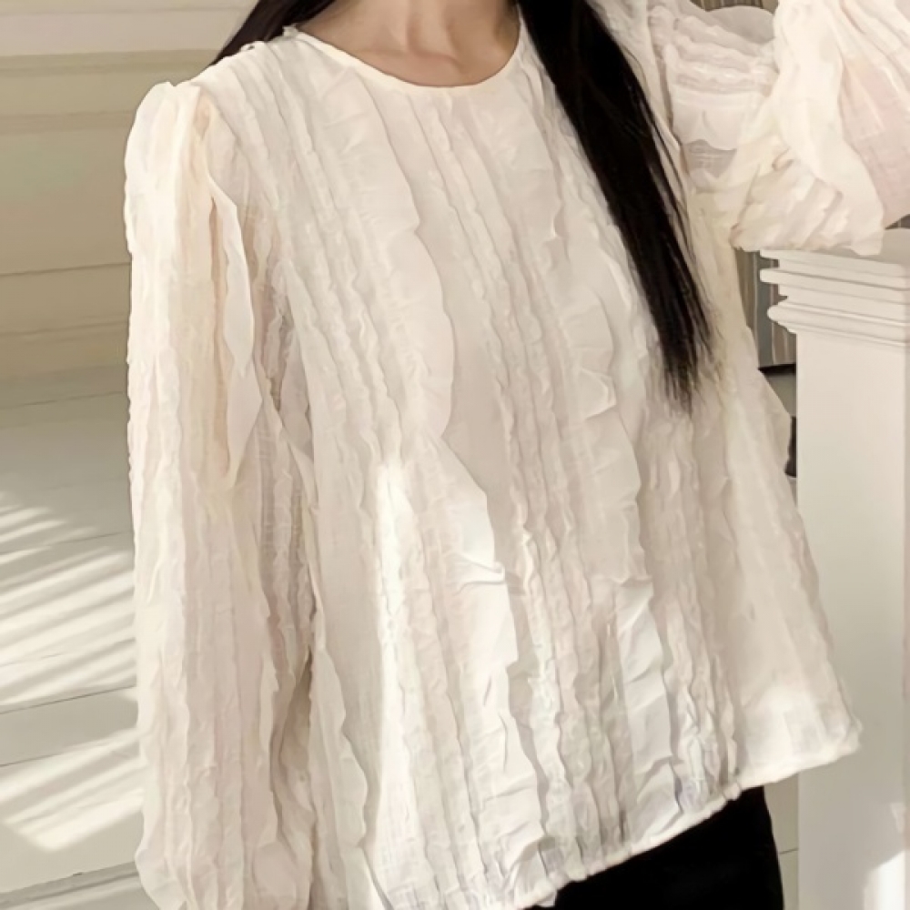 여성 프릴 레이스 라운드 블라우스