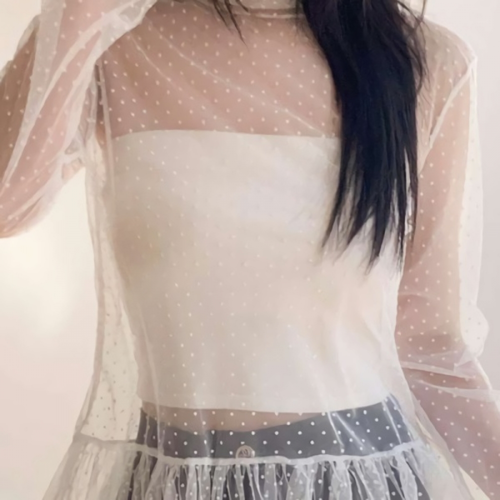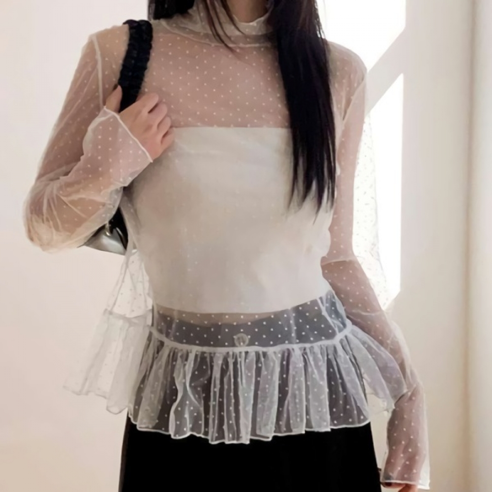여성 봄 데일리 도트 프릴 카라 블라우스