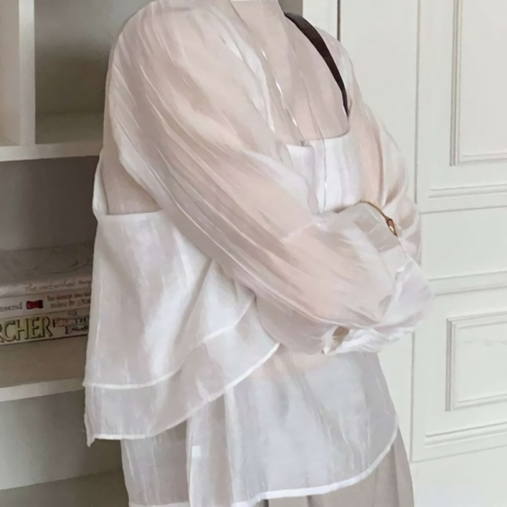 버튼 프릴 나시 뷔스티에 시스루 블라우스 세트