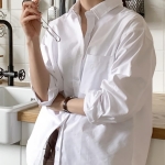 여성 봄 여름 오버핏 무지 포켓 코튼 셔츠