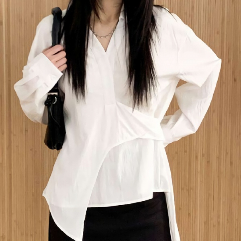 여성 스트랩 오버핏 랩 셔츠 블라우스
