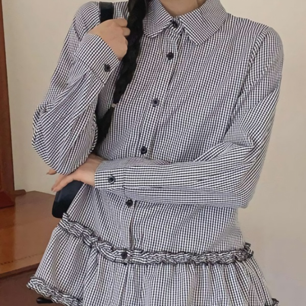여성 봄 오버핏 프릴 카라 긴팔 셔츠